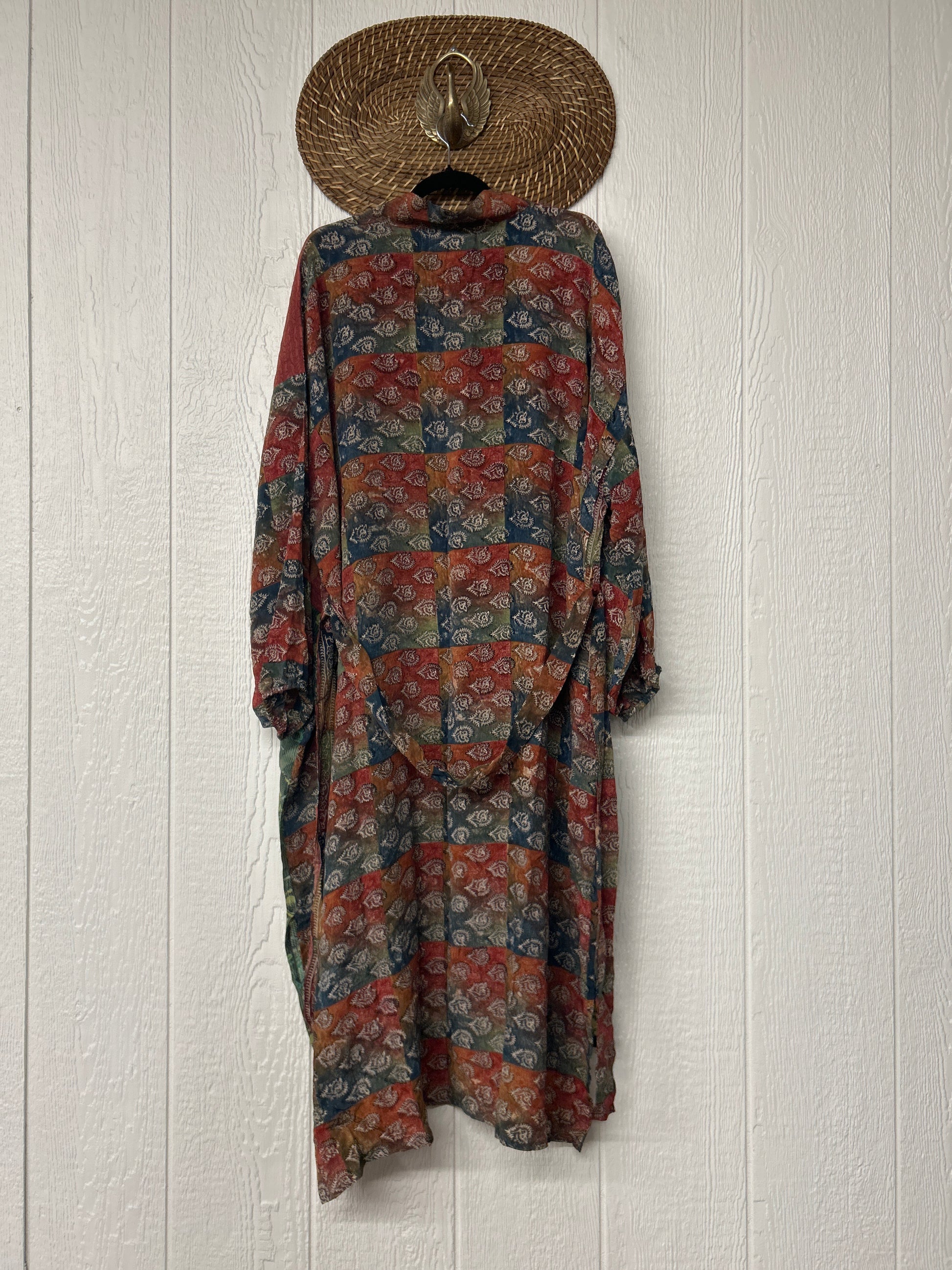 Crepe Dusters are beautiful, flowy, midi-length kimonos made from our ultra lux vintage crepe sari. They feature balloon sleeves with elastic at the wrist, 2 slouchy pockets, and a sash. They are one of our favorite layering pieces EVER.
