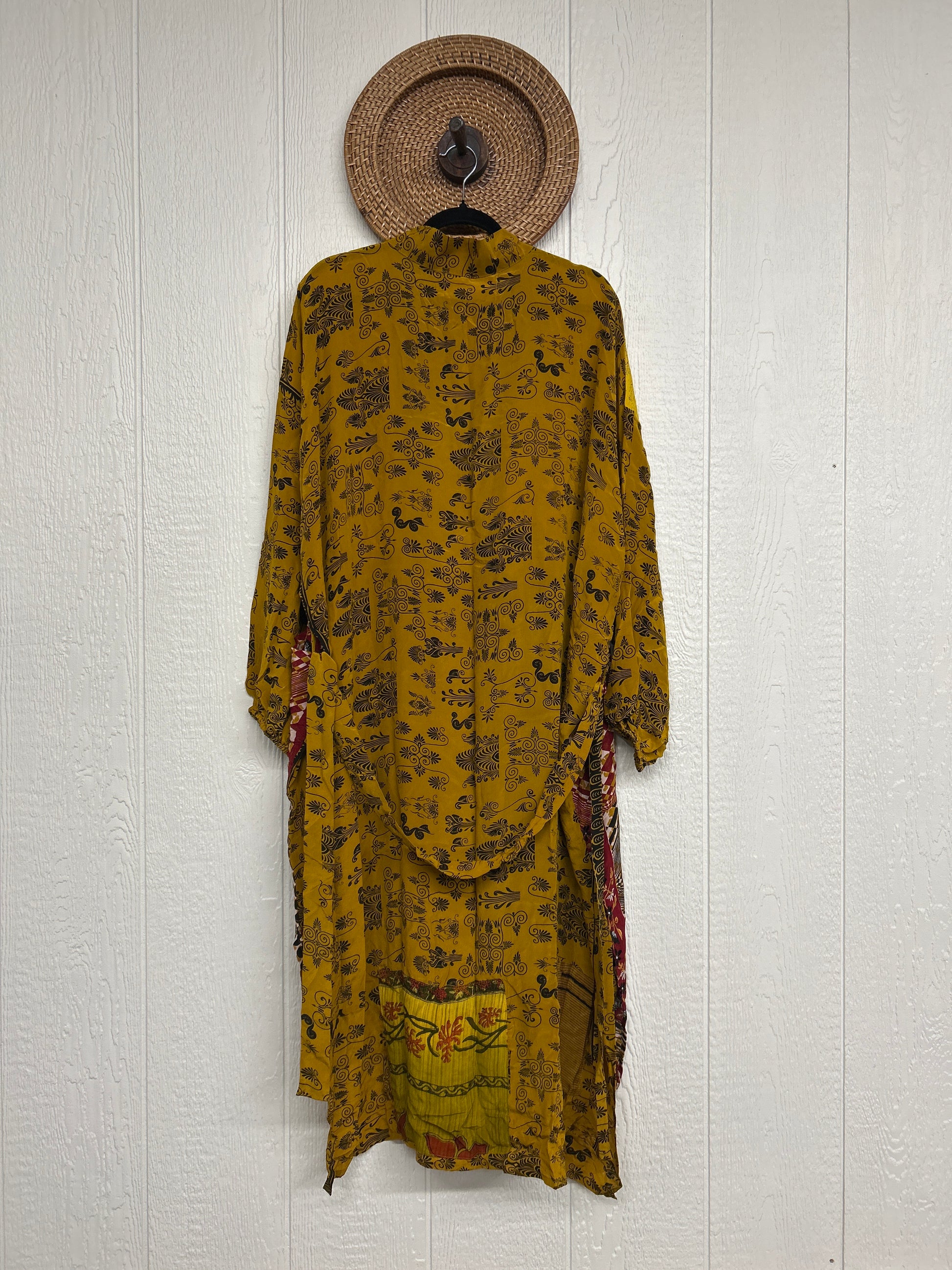 Crepe Dusters are beautiful, flowy, midi-length kimonos made from our ultra lux vintage crepe sari. They feature balloon sleeves with elastic at the wrist, 2 slouchy pockets, and a sash. They are one of our favorite layering pieces EVER.