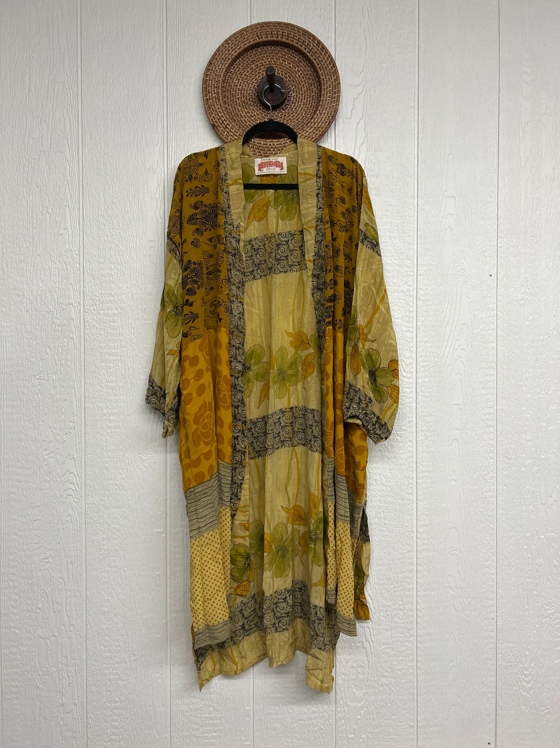 Crepe Dusters are beautiful, flowy, midi-length kimonos made from our ultra lux vintage crepe sari. They feature balloon sleeves with elastic at the wrist, 2 slouchy pockets, and a sash. They are one of our favorite layering pieces EVER.