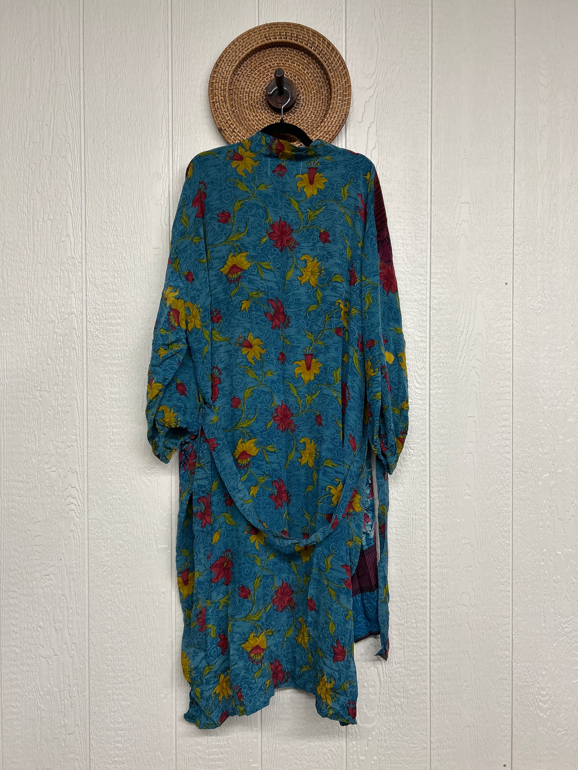 Crepe Dusters are beautiful, flowy, midi-length kimonos made from our ultra lux vintage crepe sari. They feature balloon sleeves with elastic at the wrist, 2 slouchy pockets, and a sash. They are one of our favorite layering pieces EVER.