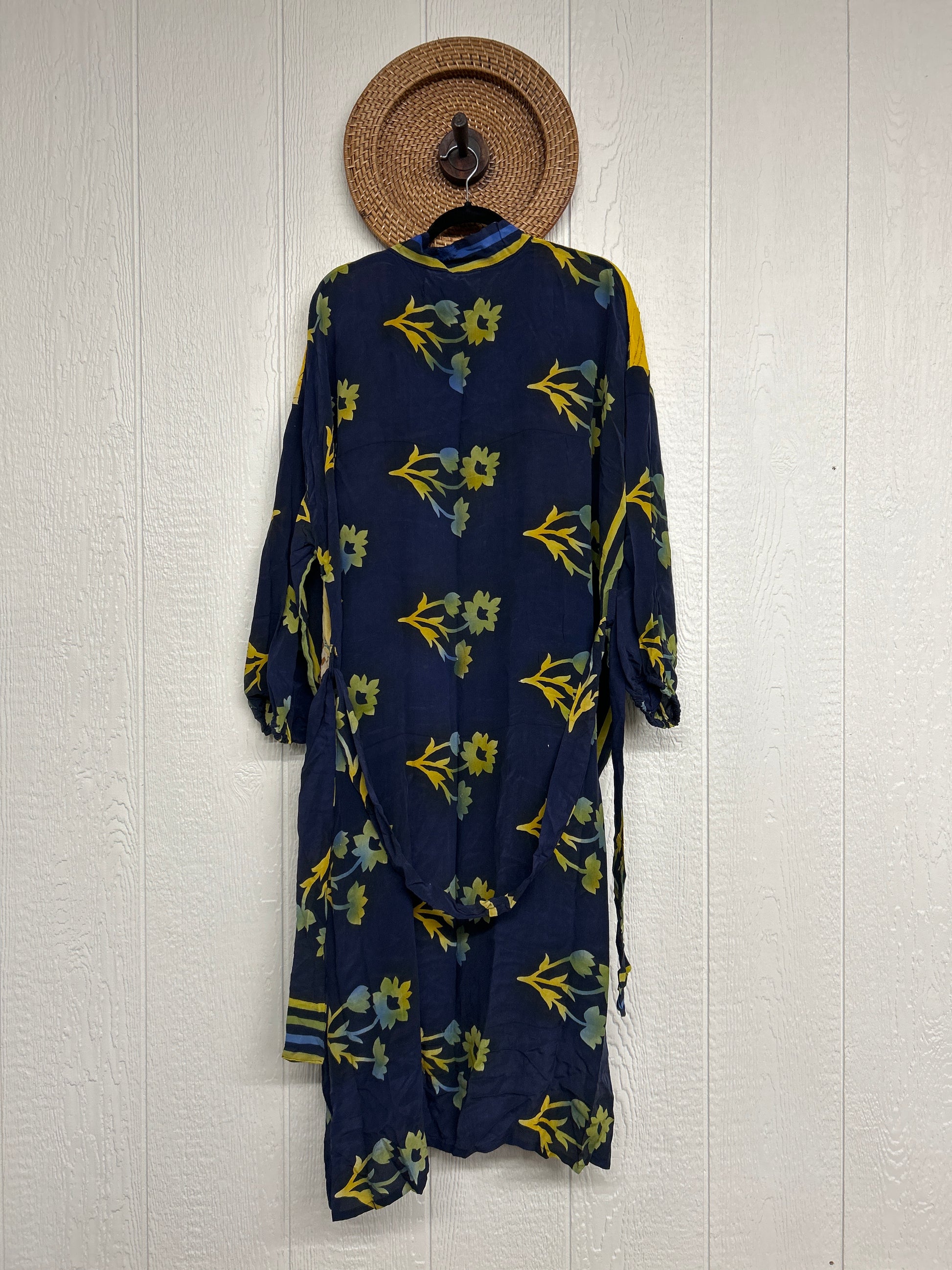 Crepe Dusters are beautiful, flowy, midi-length kimonos made from our ultra lux vintage crepe sari. They feature balloon sleeves with elastic at the wrist, 2 slouchy pockets, and a sash. They are one of our favorite layering pieces EVER.
