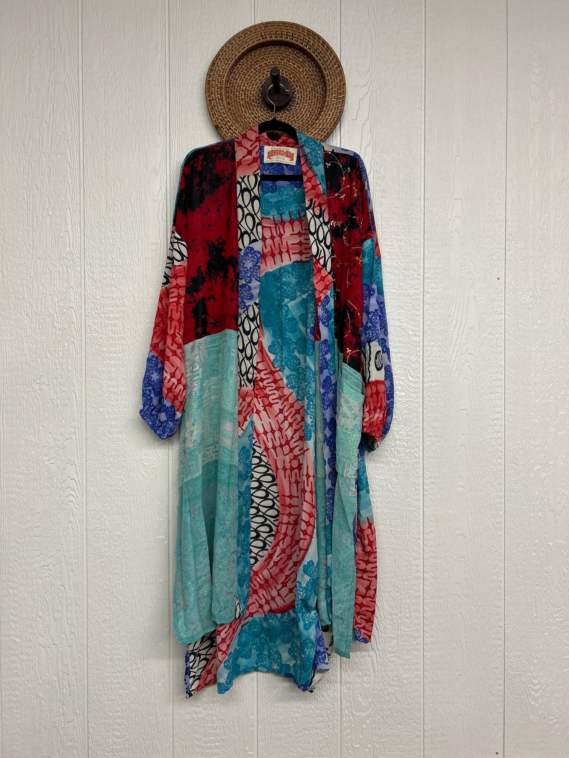 Crepe Dusters are beautiful, flowy, midi-length kimonos made from our ultra lux vintage crepe sari. They feature balloon sleeves with elastic at the wrist, 2 slouchy pockets, and a sash. They are one of our favorite layering pieces EVER.