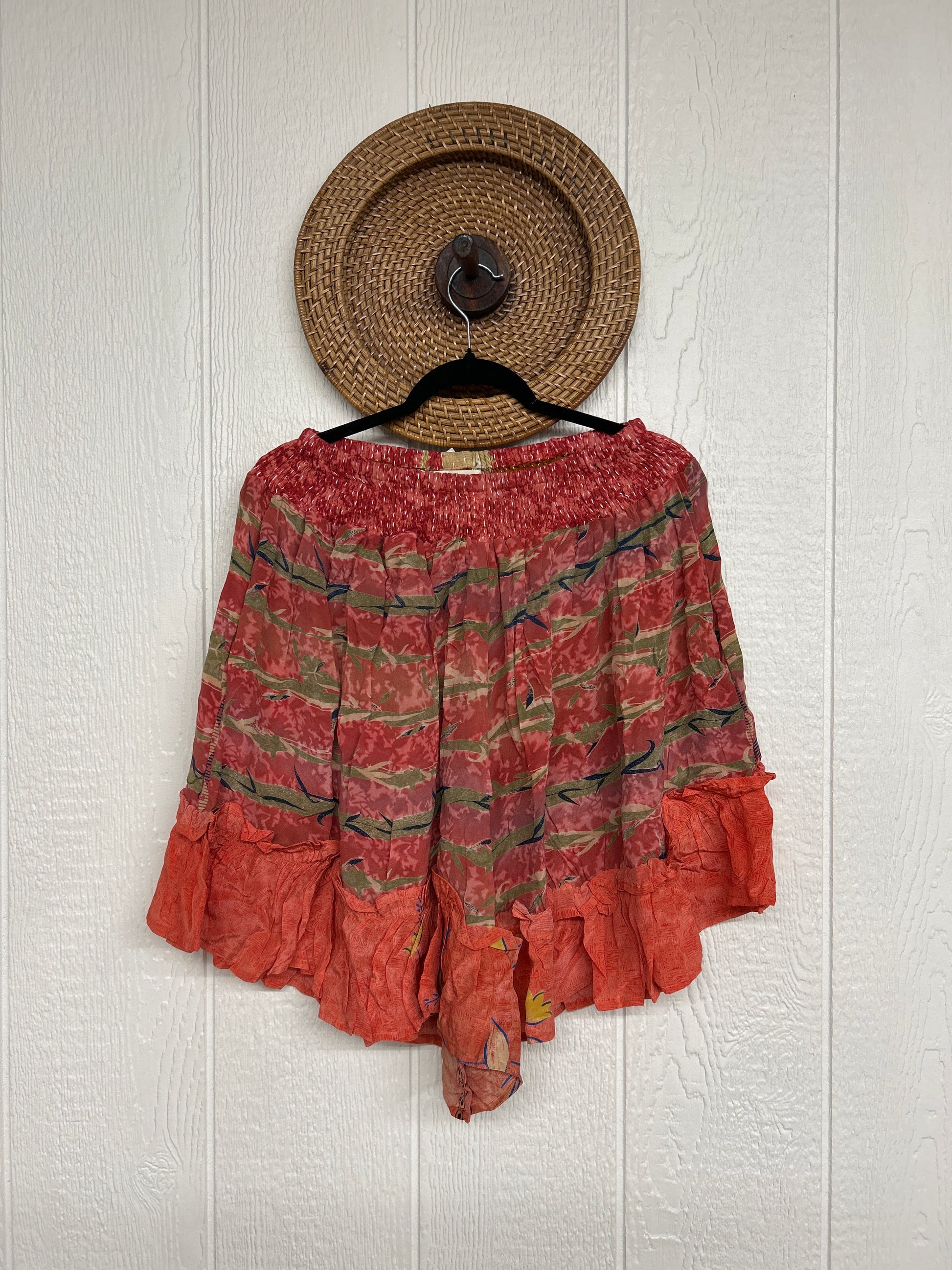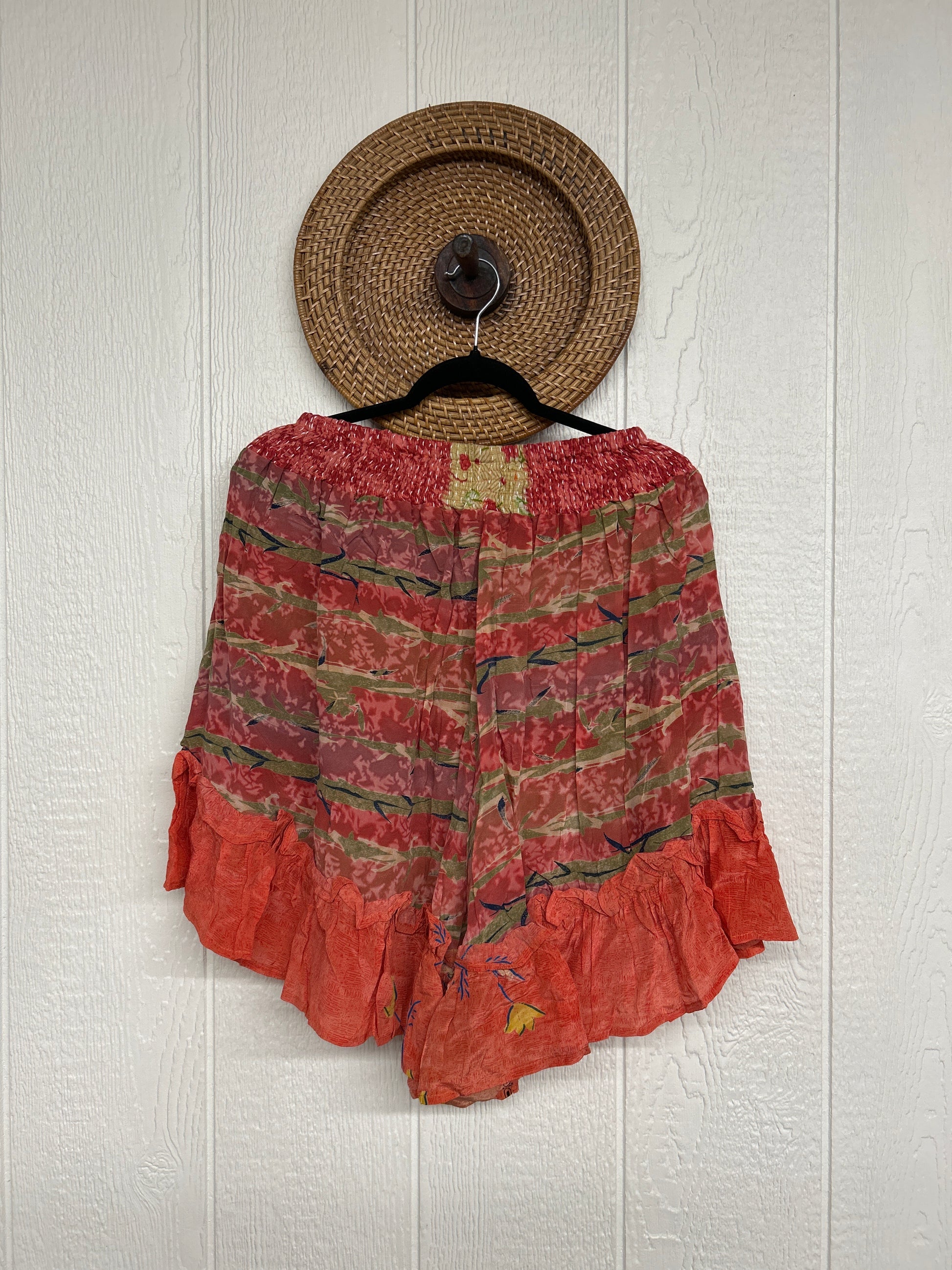 Crafted from vintage crepe sari, our Lover Cropped Culotte features interior pockets, a ruffle hem, stretchy kantha waist and hits at the knee.