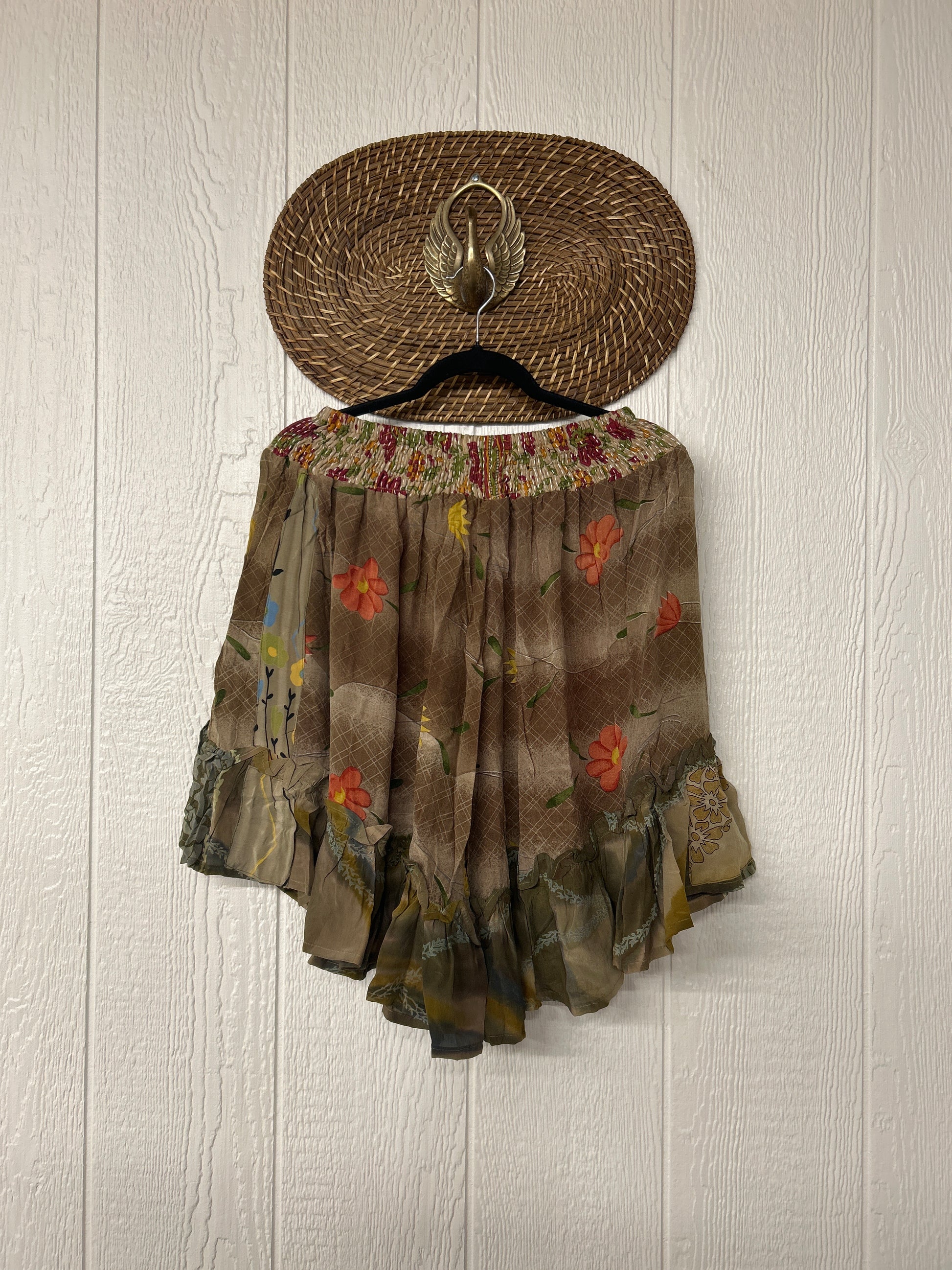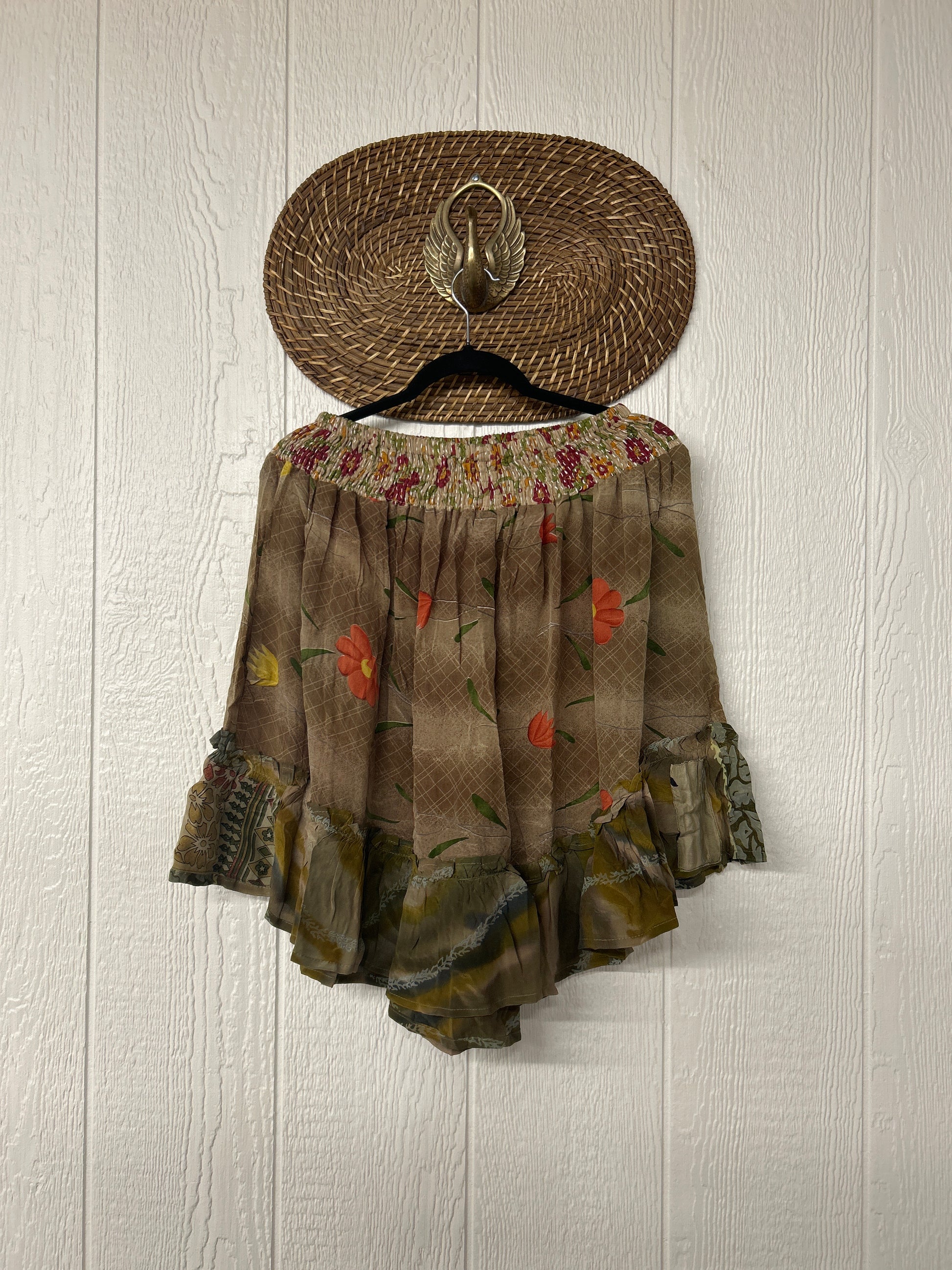 Crafted from vintage crepe sari, our Lover Cropped Culotte features interior pockets, a ruffle hem, stretchy kantha waist and hits at the knee.