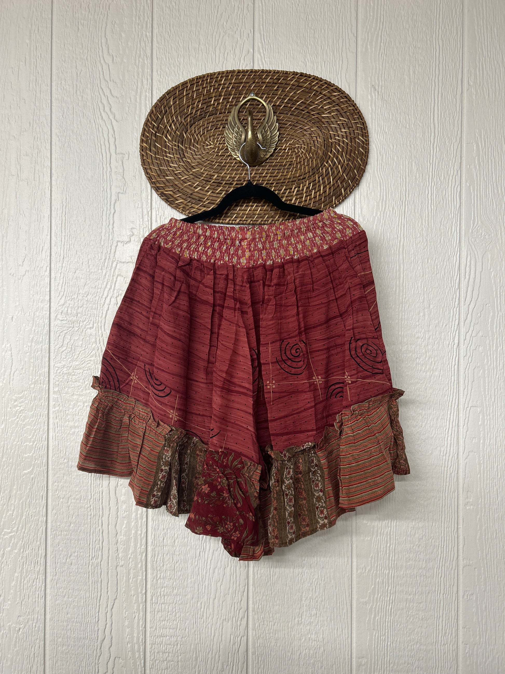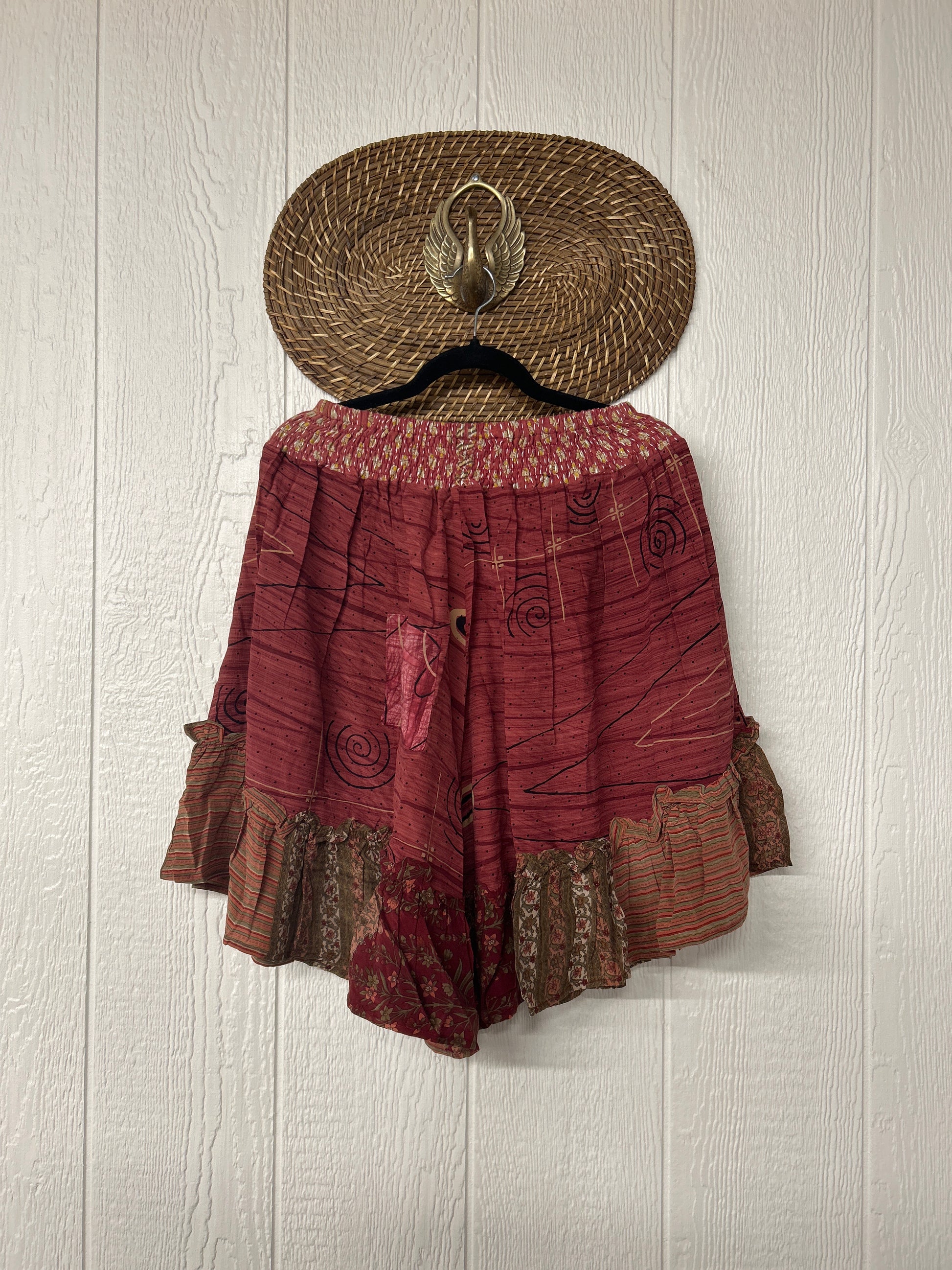 Crafted from vintage crepe sari, our Lover Cropped Culotte features interior pockets, a ruffle hem, stretchy kantha waist and hits at the knee.