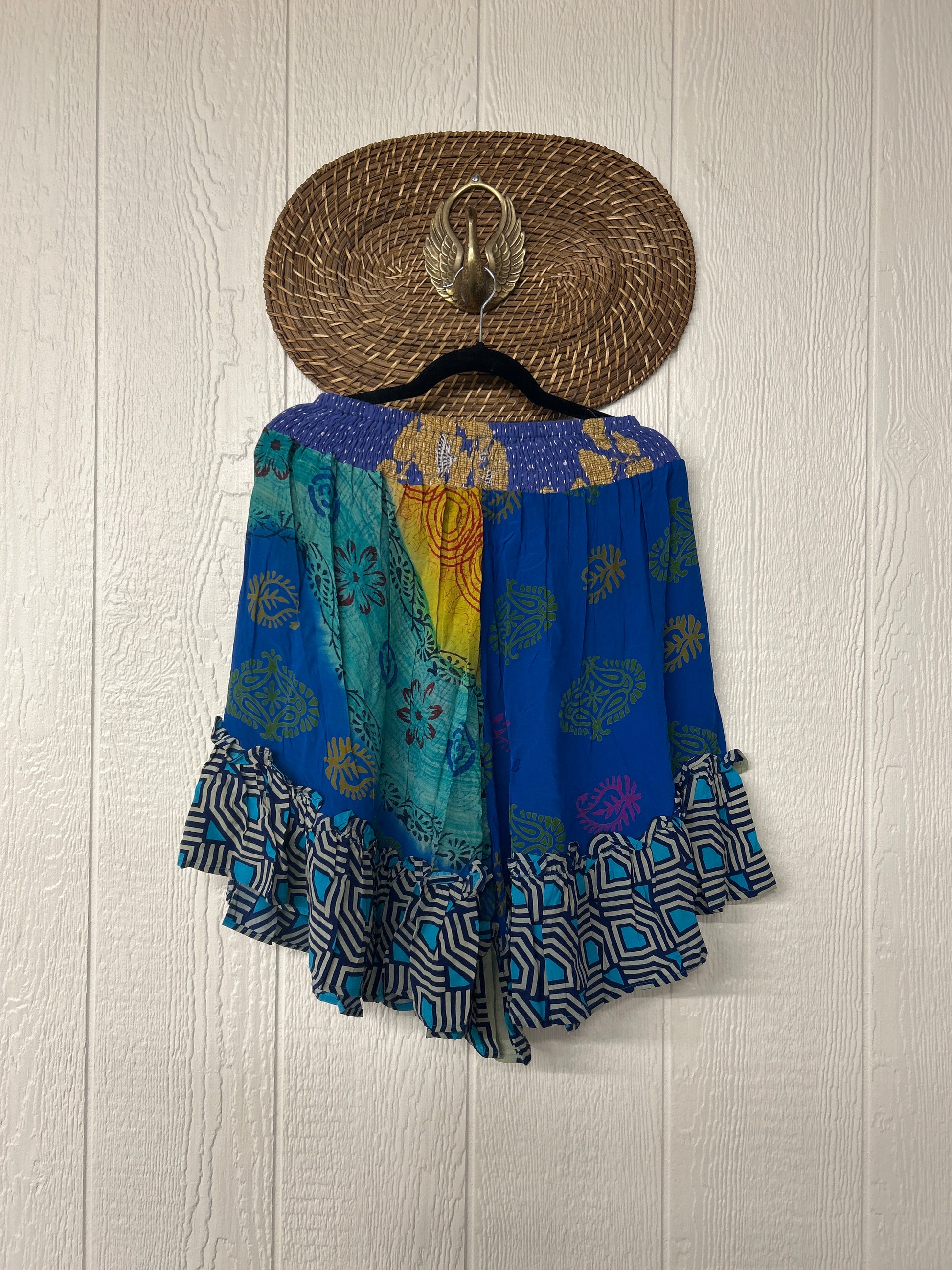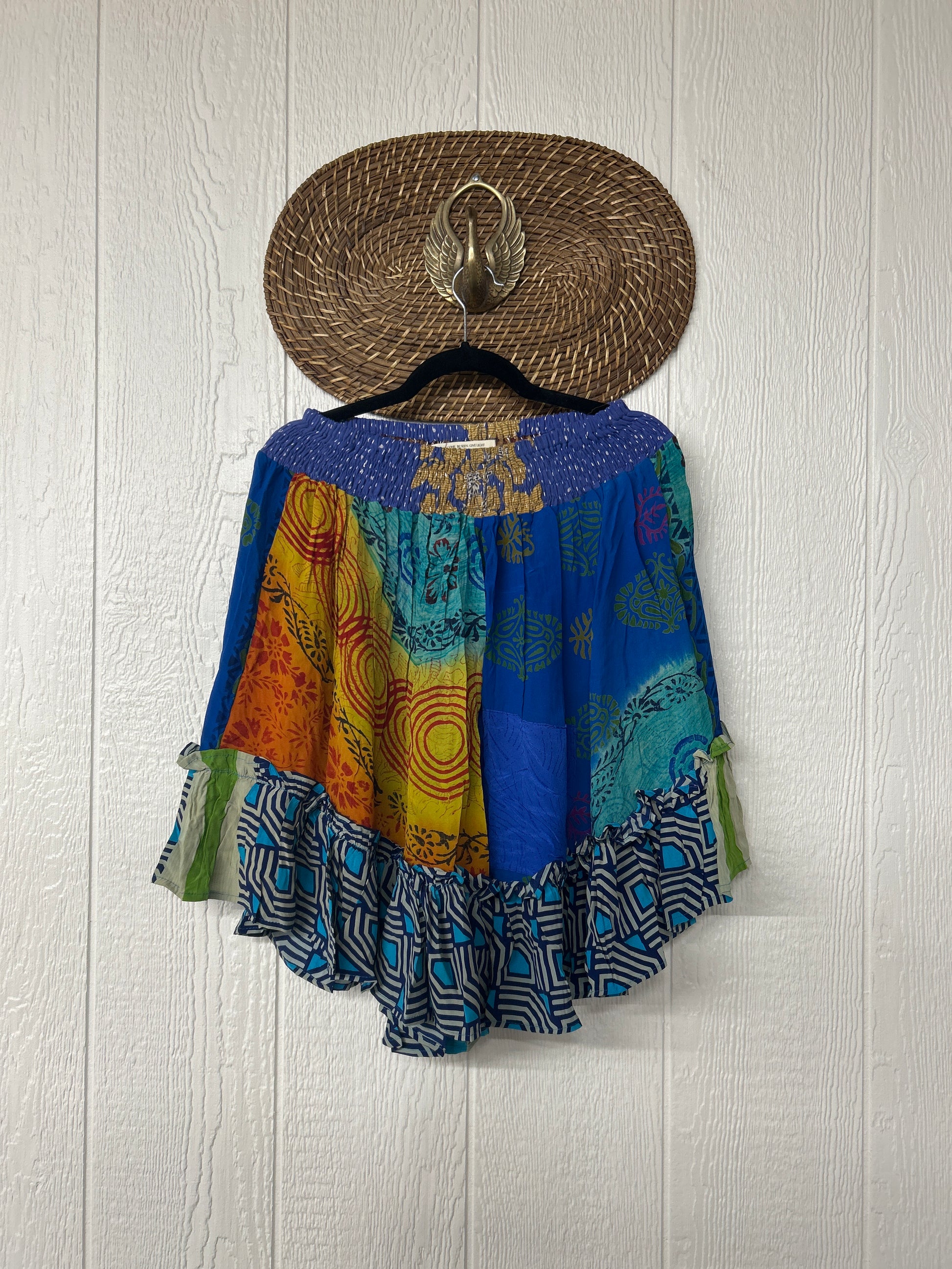 Crafted from vintage crepe sari, our Lover Cropped Culotte features interior pockets, a ruffle hem, stretchy kantha waist and hits at the knee.