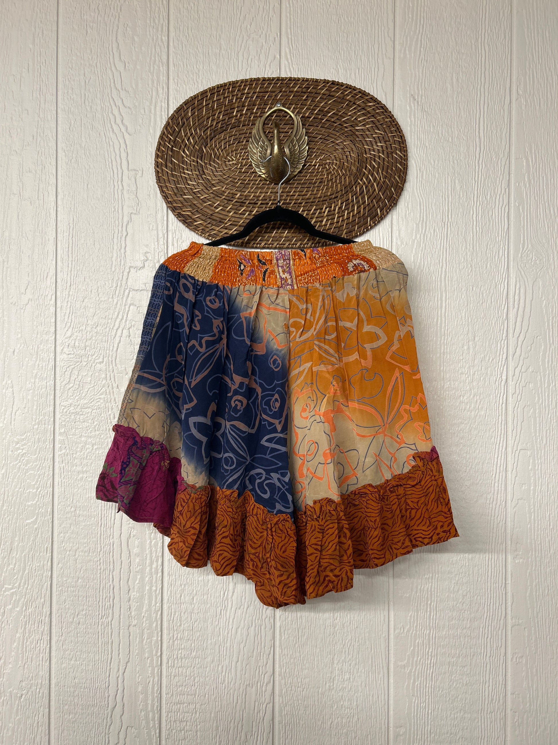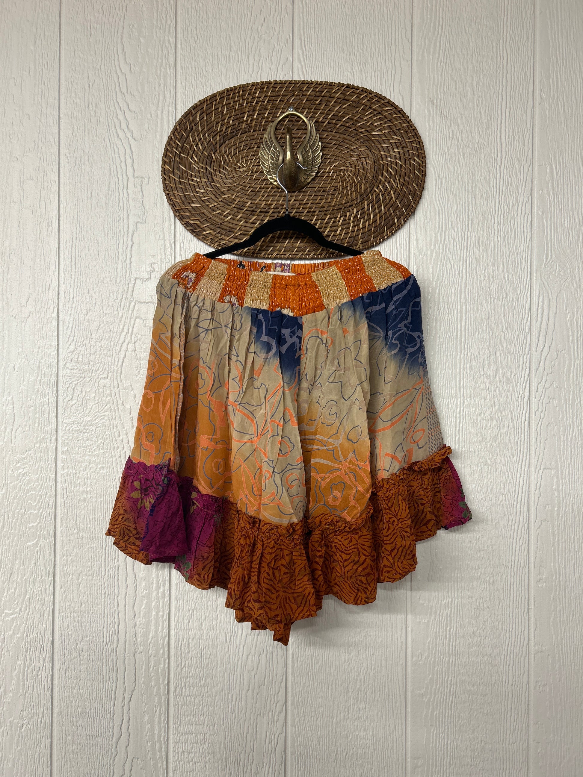 Crafted from vintage crepe sari, our Lover Cropped Culotte features interior pockets, a ruffle hem, stretchy kantha waist and hits at the knee.