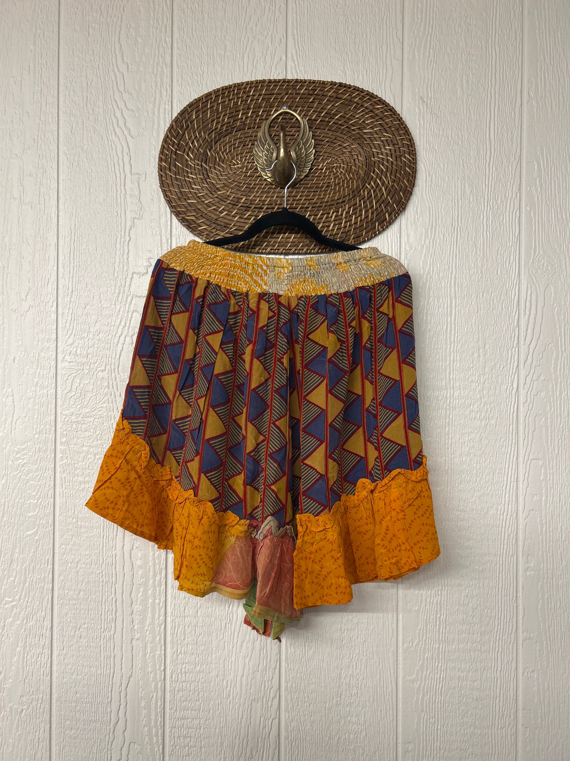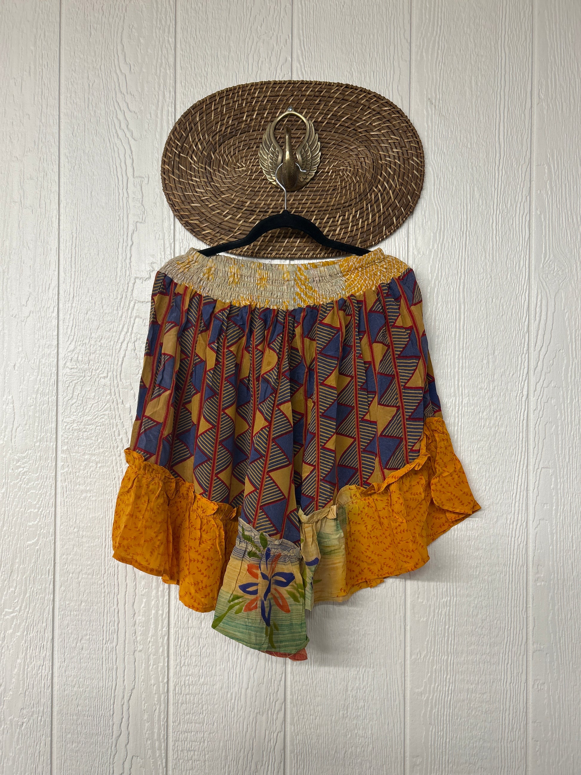 Crafted from vintage crepe sari, our Lover Cropped Culotte features interior pockets, a ruffle hem, stretchy kantha waist and hits at the knee.