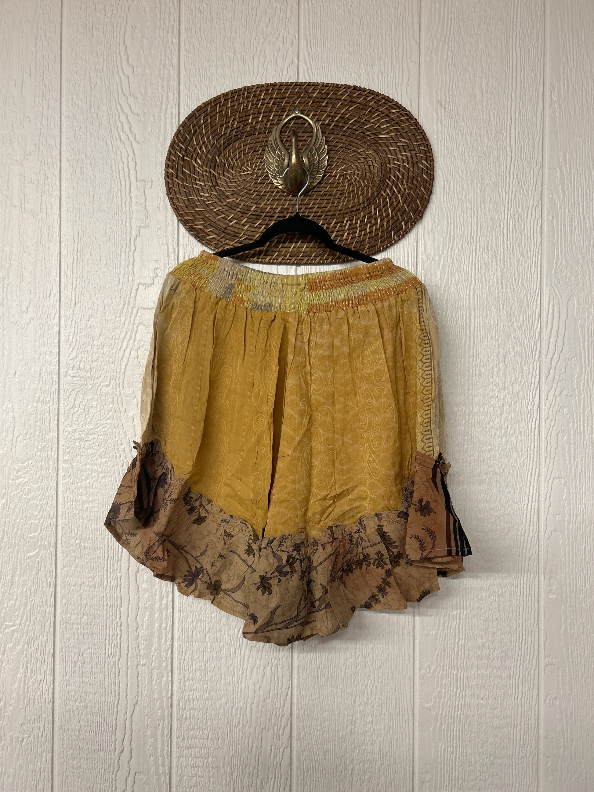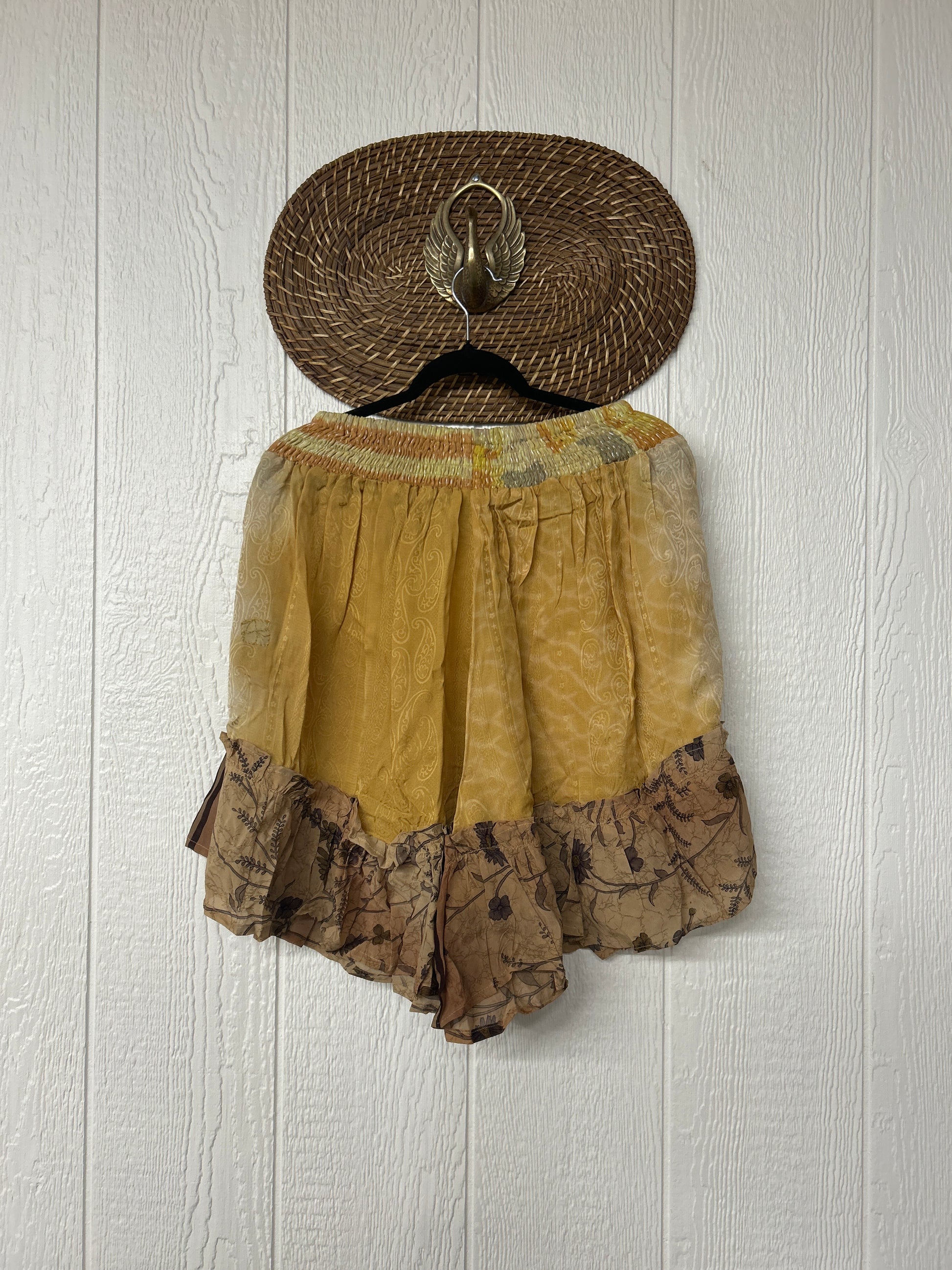 Crafted from vintage crepe sari, our Lover Cropped Culotte features interior pockets, a ruffle hem, stretchy kantha waist and hits at the knee.