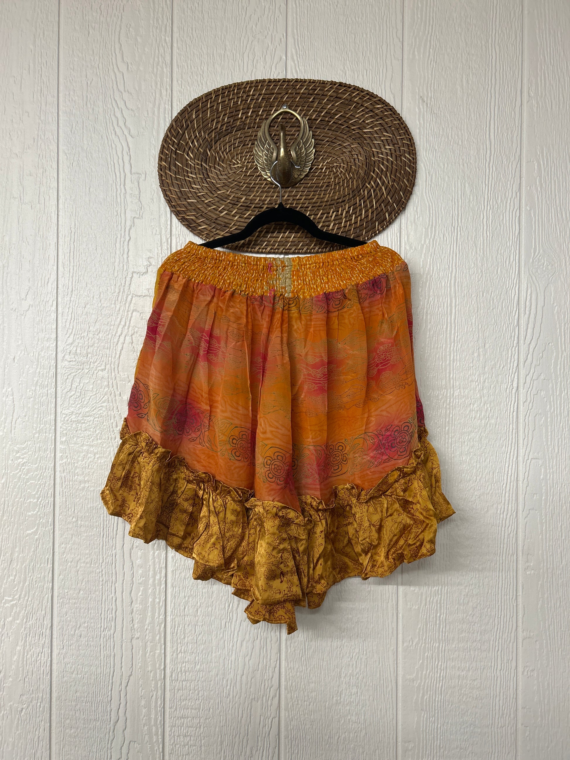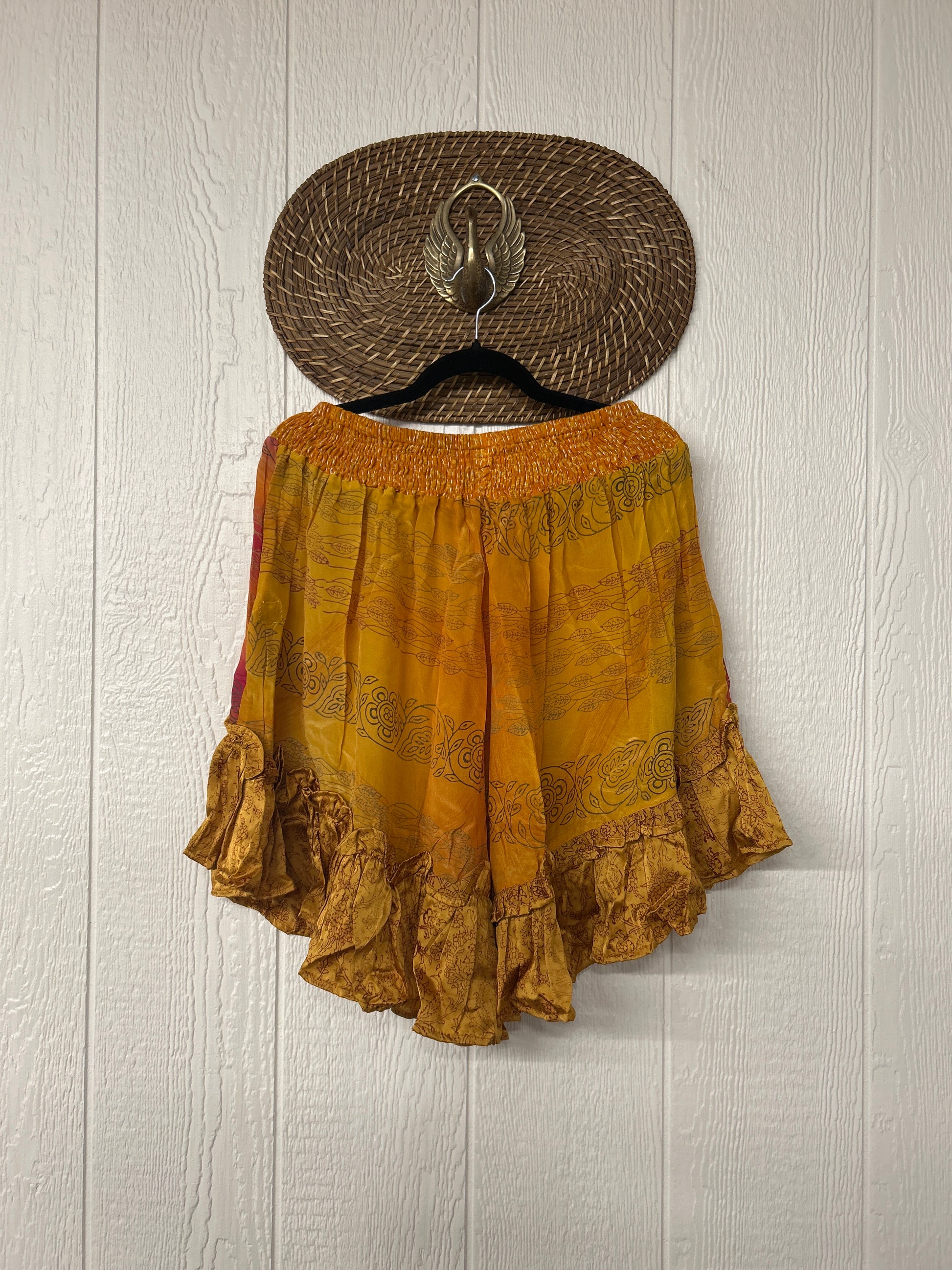 Crafted from vintage crepe sari, our Lover Cropped Culotte features interior pockets, a ruffle hem, stretchy kantha waist and hits at the knee.