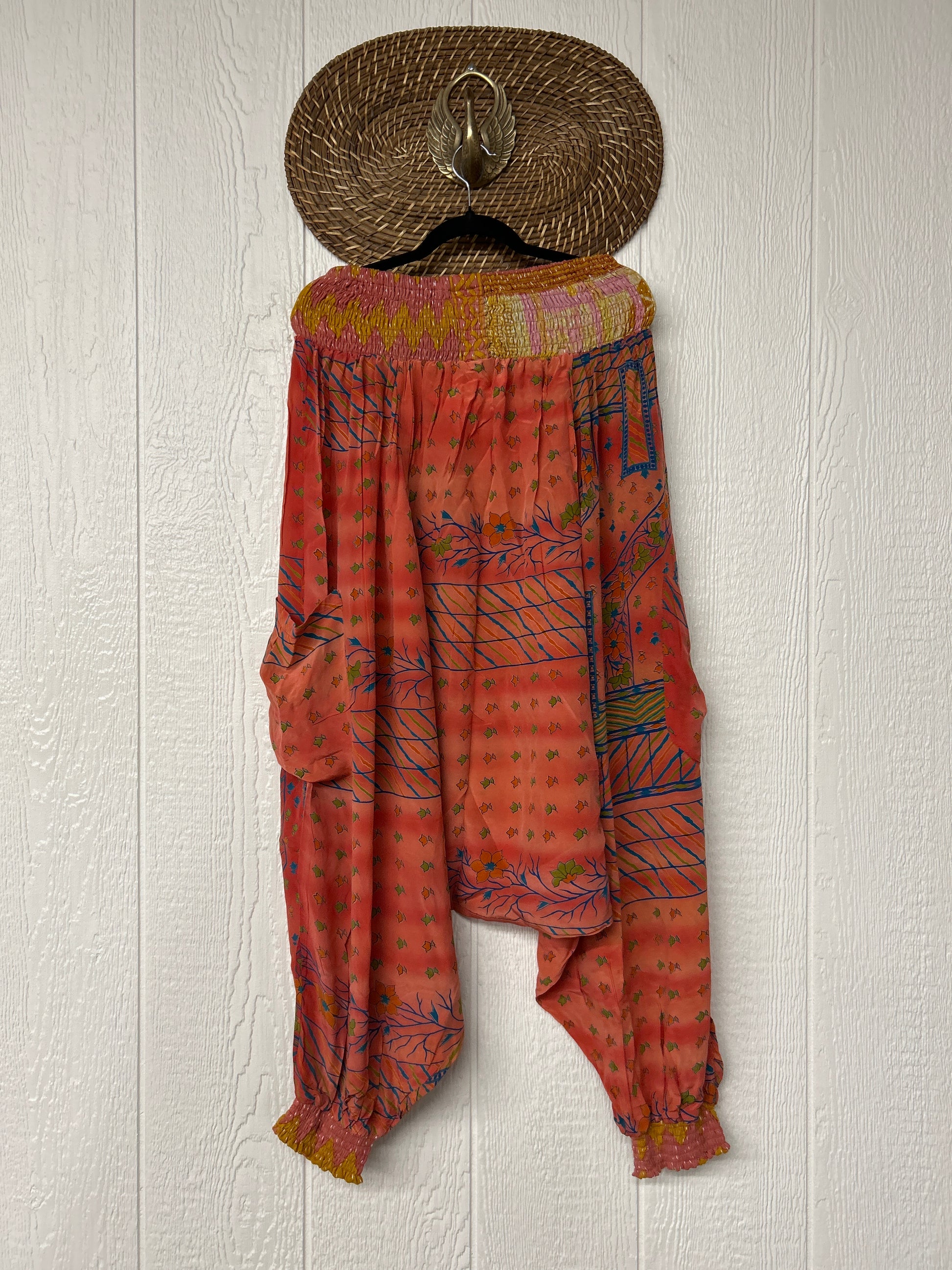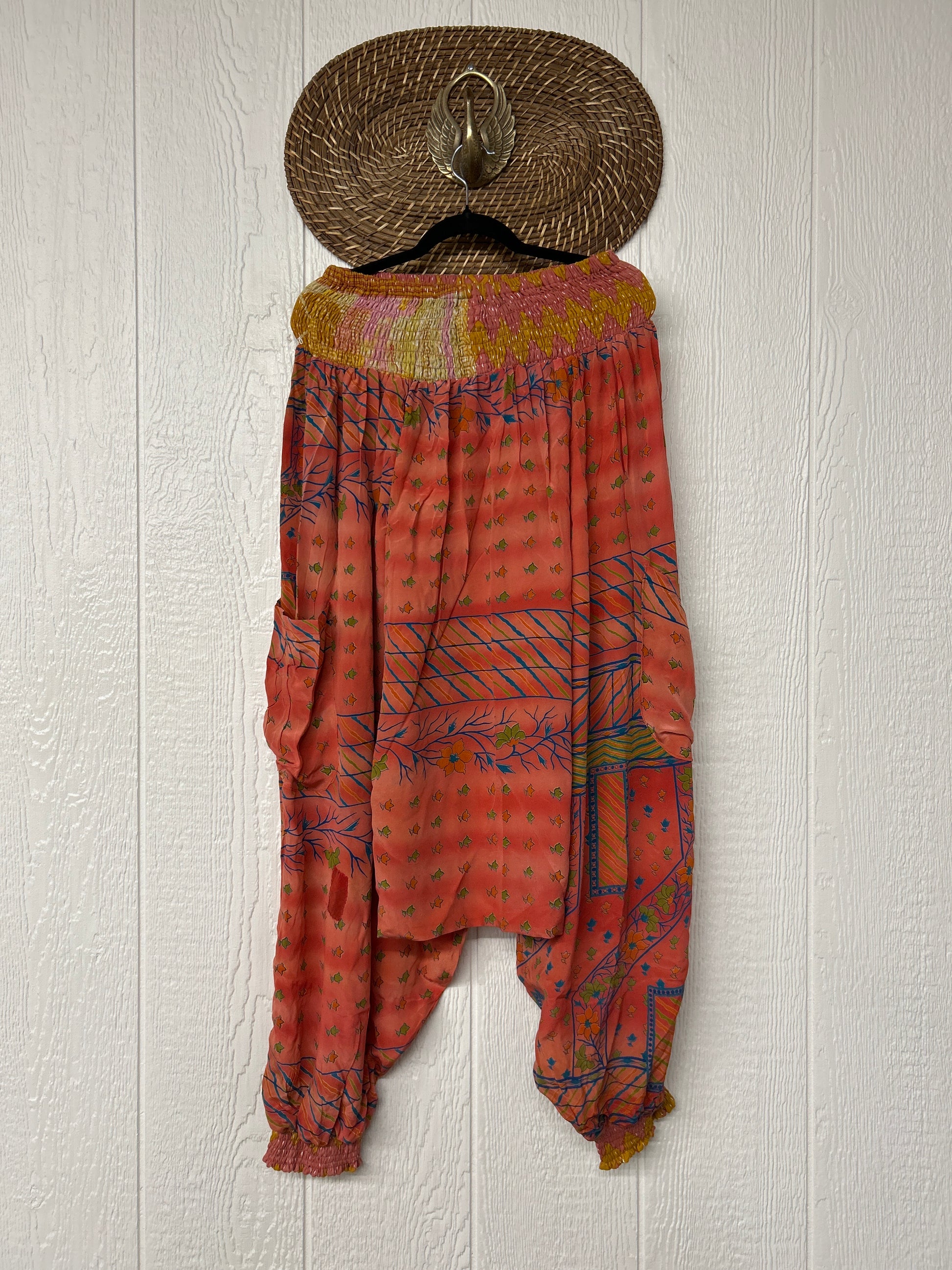 Made from vintage crepe sari, these are perfectly slouchy with a low harem drop for that effortless, flowy feel. Featuring deep side pockets, kantha stretch at the ankles, and a kantha smocked waistband that feels smooth and soft on the skin.