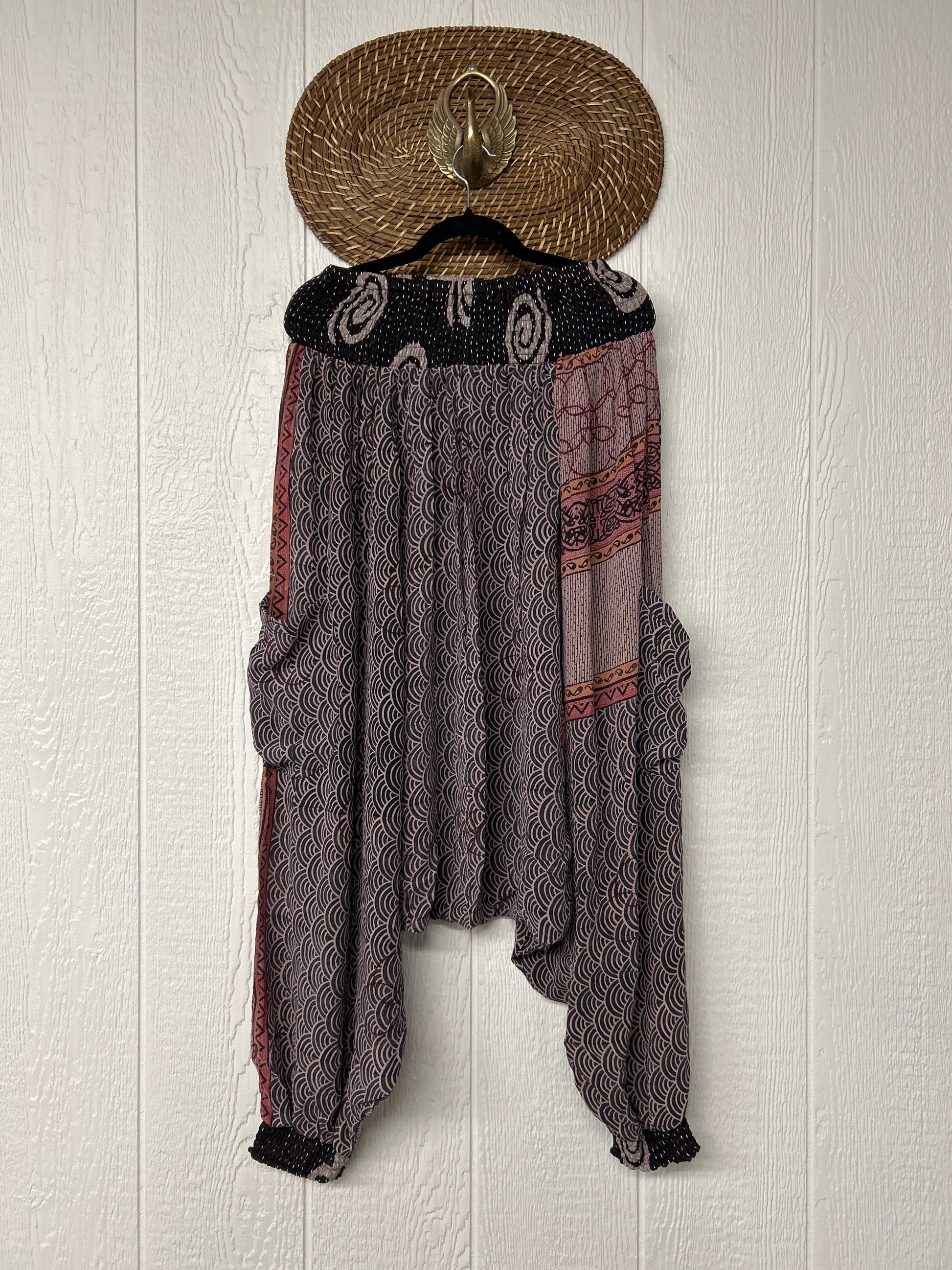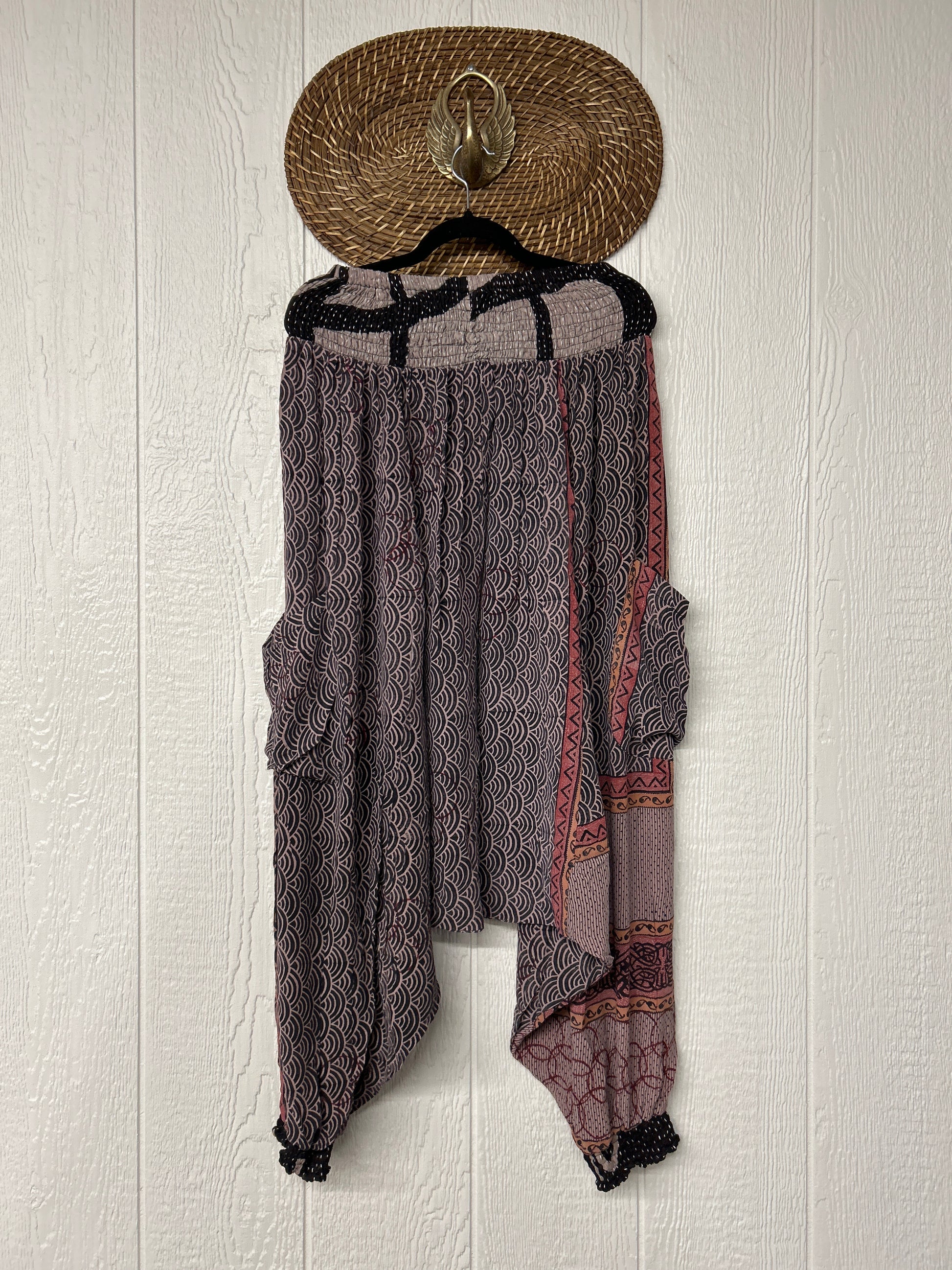 Made from vintage crepe sari, these are perfectly slouchy with a low harem drop for that effortless, flowy feel. Featuring deep side pockets, kantha stretch at the ankles, and a kantha smocked waistband that feels smooth and soft on the skin.
