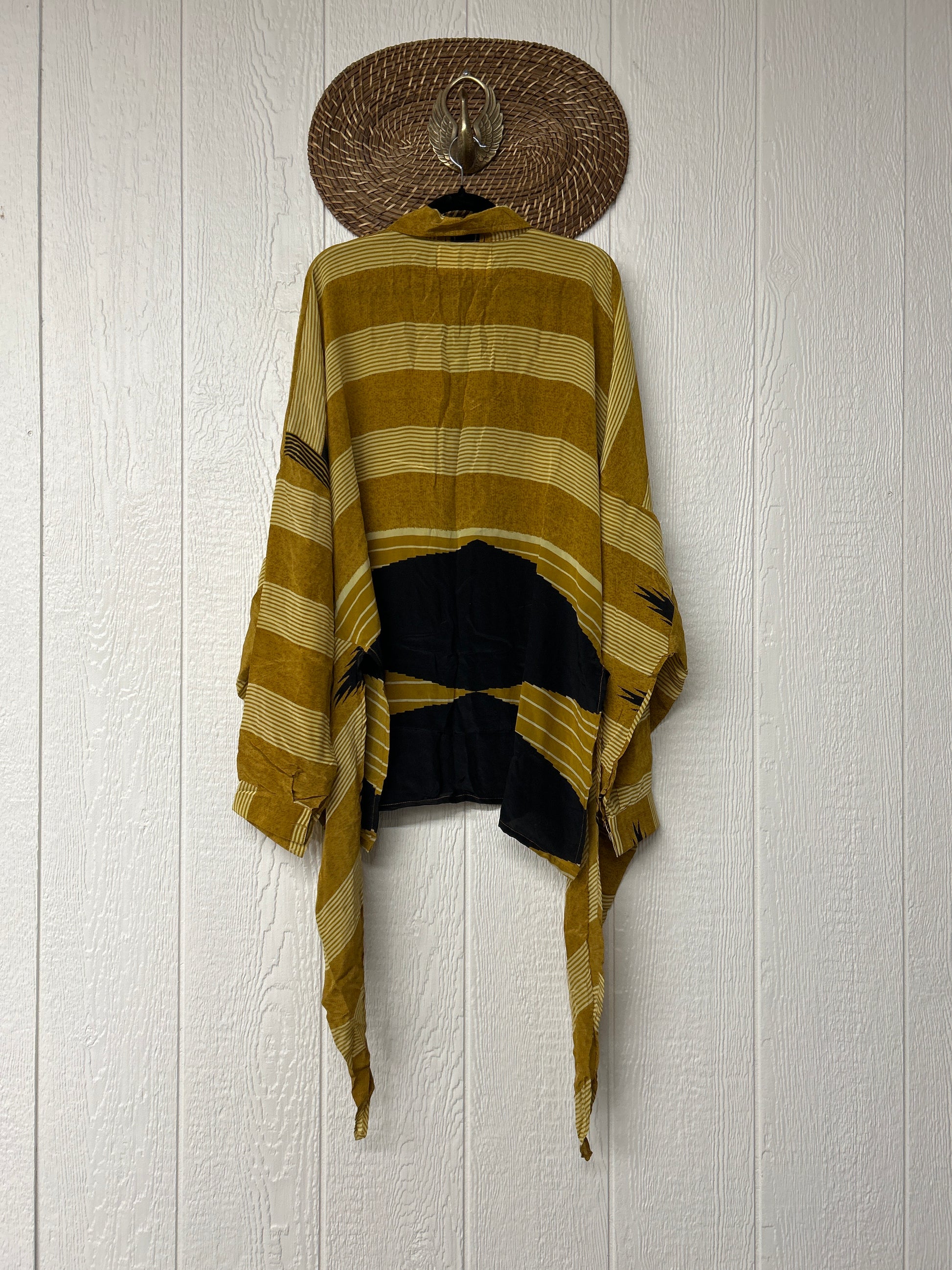 Crafted from our ultra lux vintage crepe sari this floaty dream features a Button-down placket with a high low hem, collar, and button cuffs.