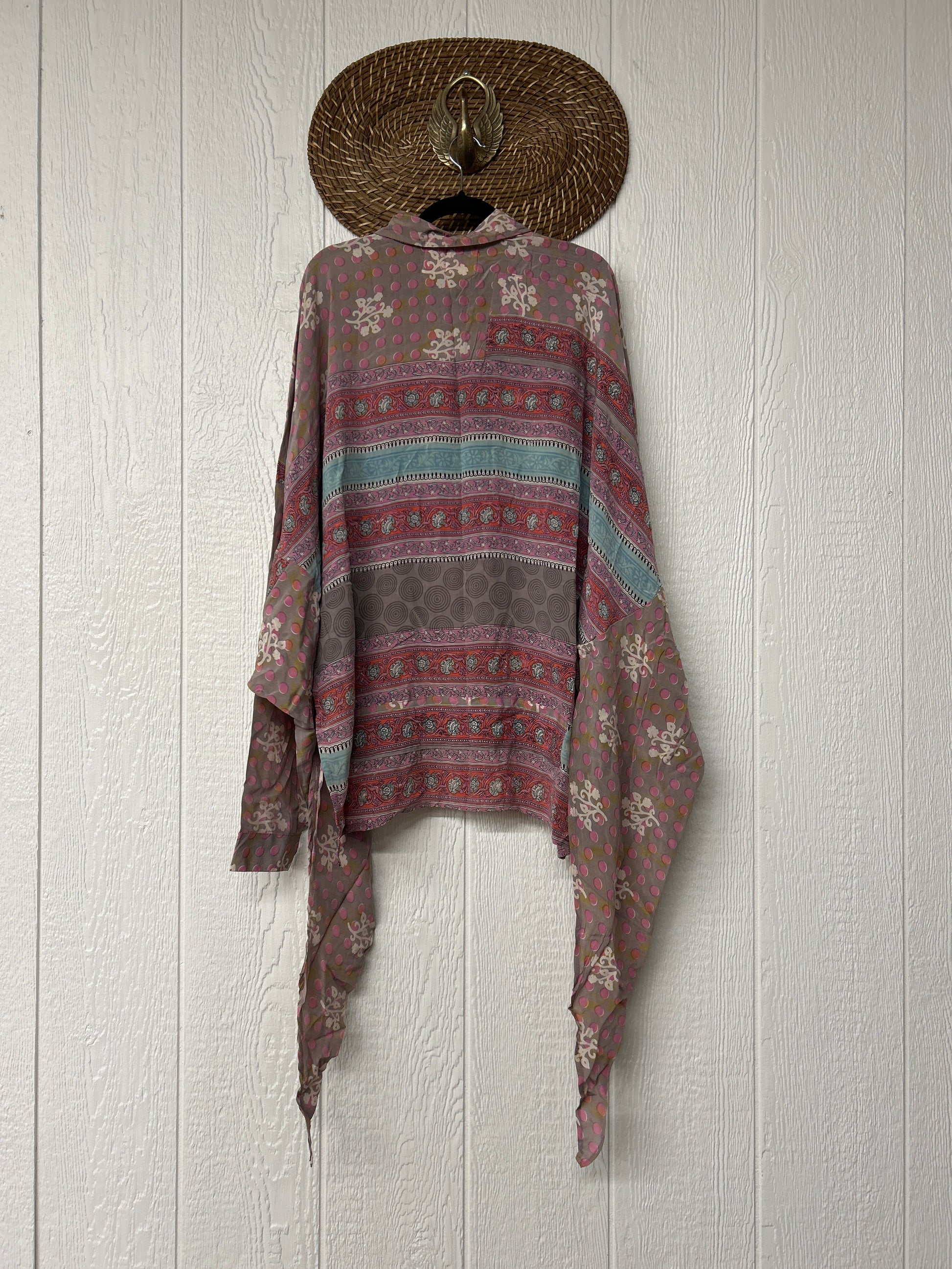 Crafted from our ultra lux vintage crepe sari this floaty dream features a Button-down placket with a high low hem, collar, and button cuffs.