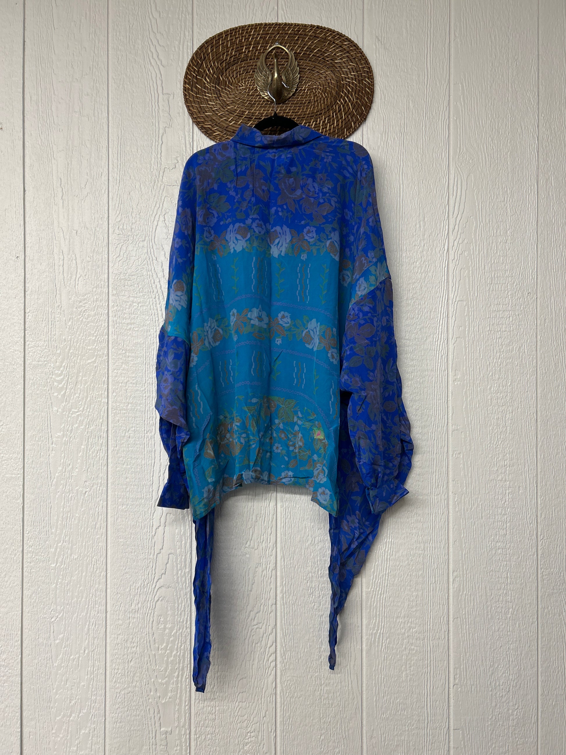 Crafted from our ultra lux vintage crepe sari this floaty dream features a Button-down placket with a high low hem, collar, and button cuffs.