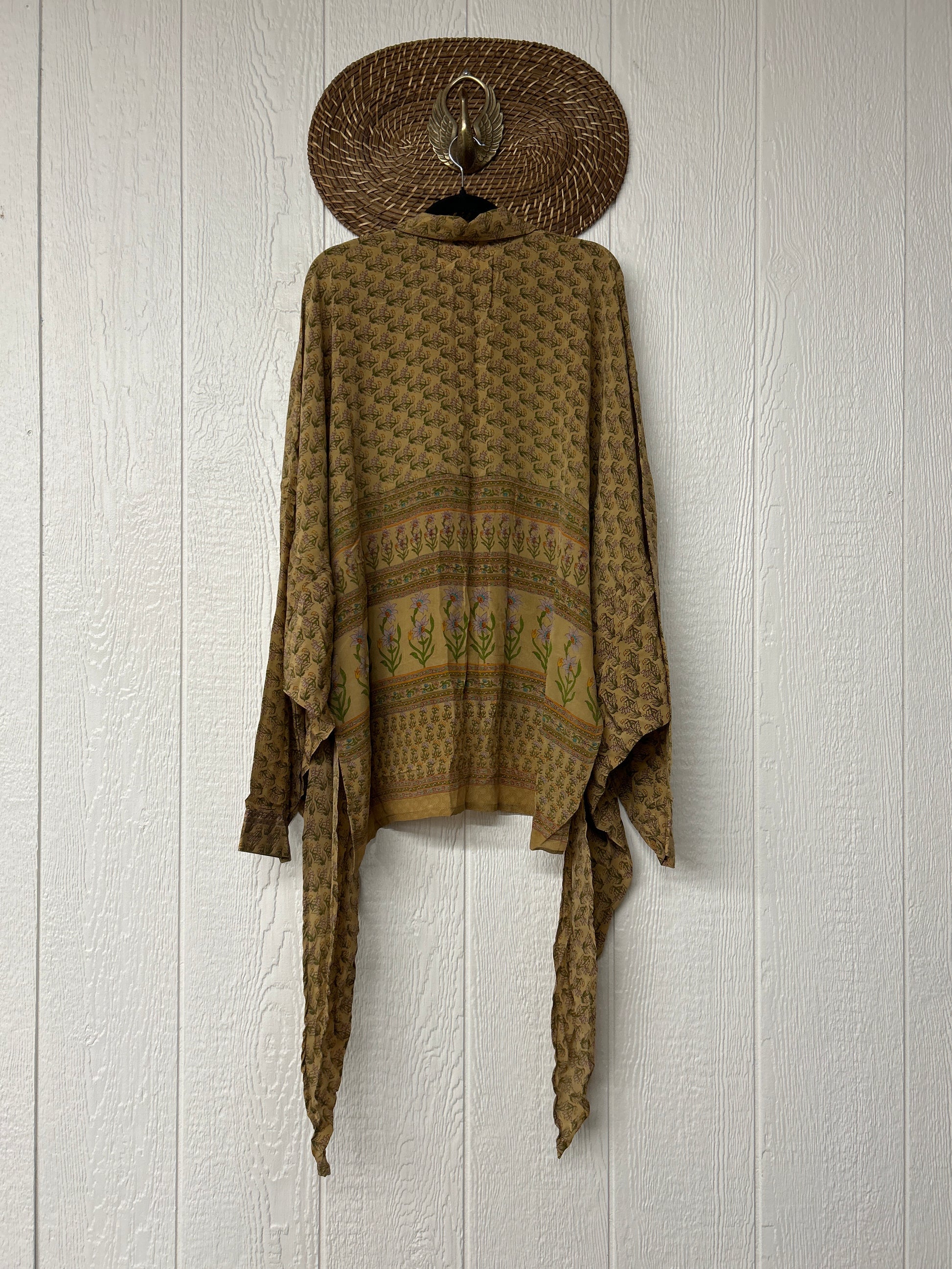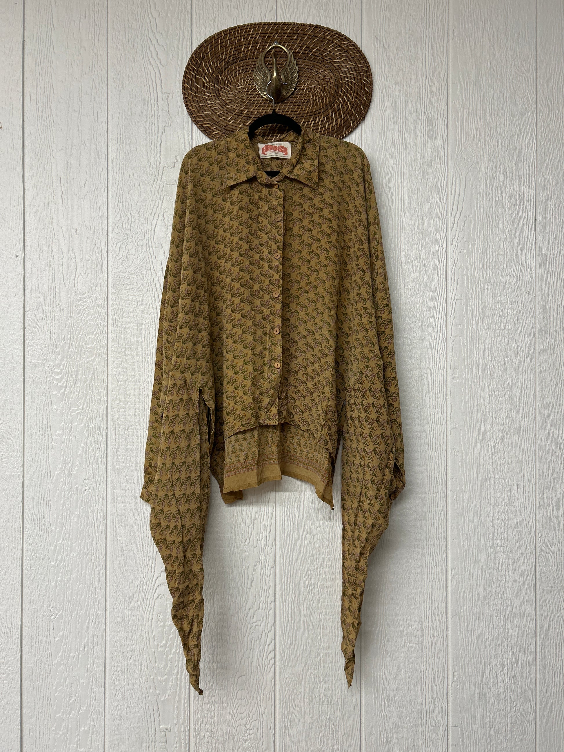Crafted from our ultra lux vintage crepe sari this floaty dream features a Button-down placket with a high low hem, collar, and button cuffs.