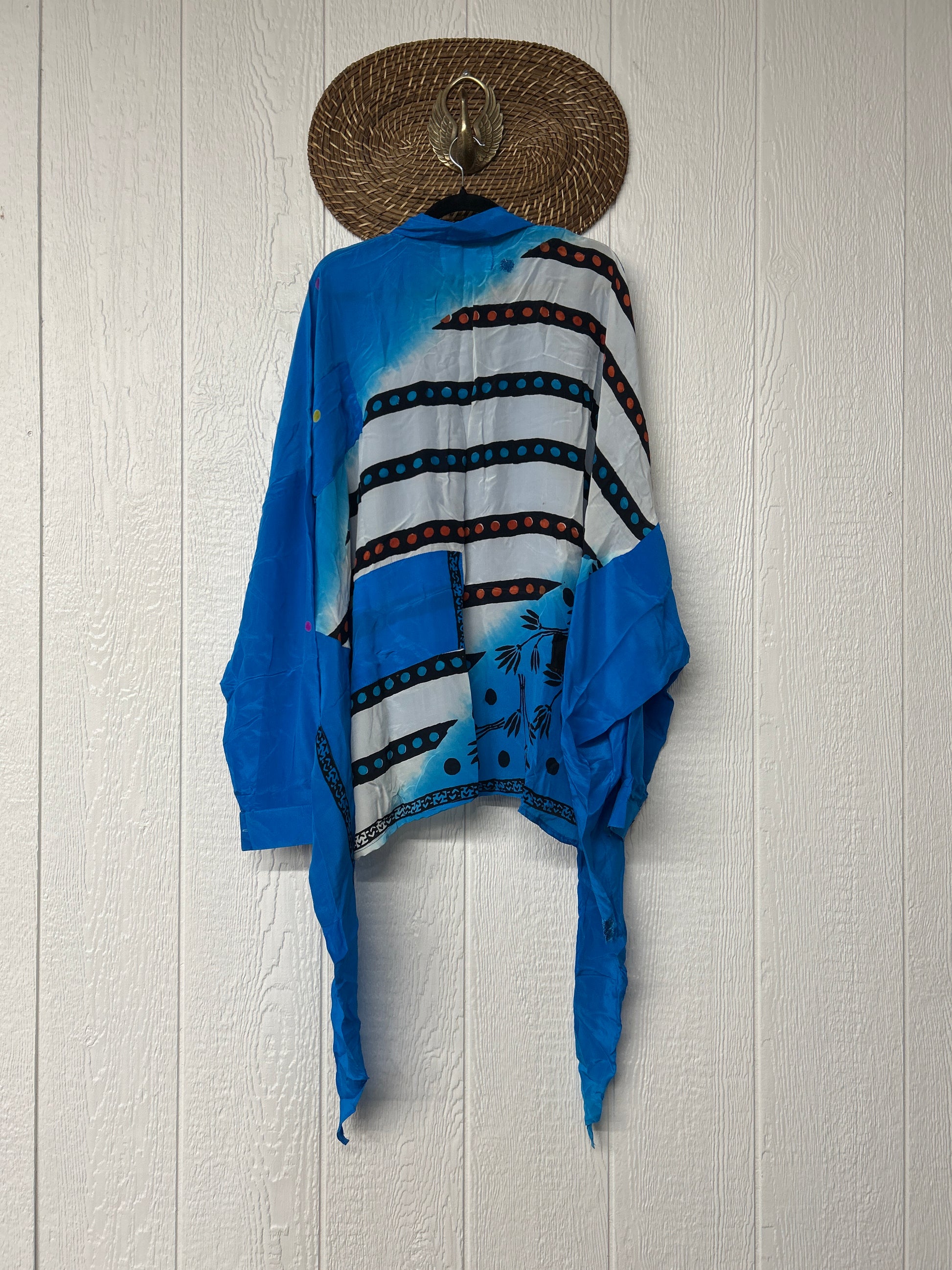 Crafted from our ultra lux vintage crepe sari this floaty dream features a Button-down placket with a high low hem, collar, and button cuffs.