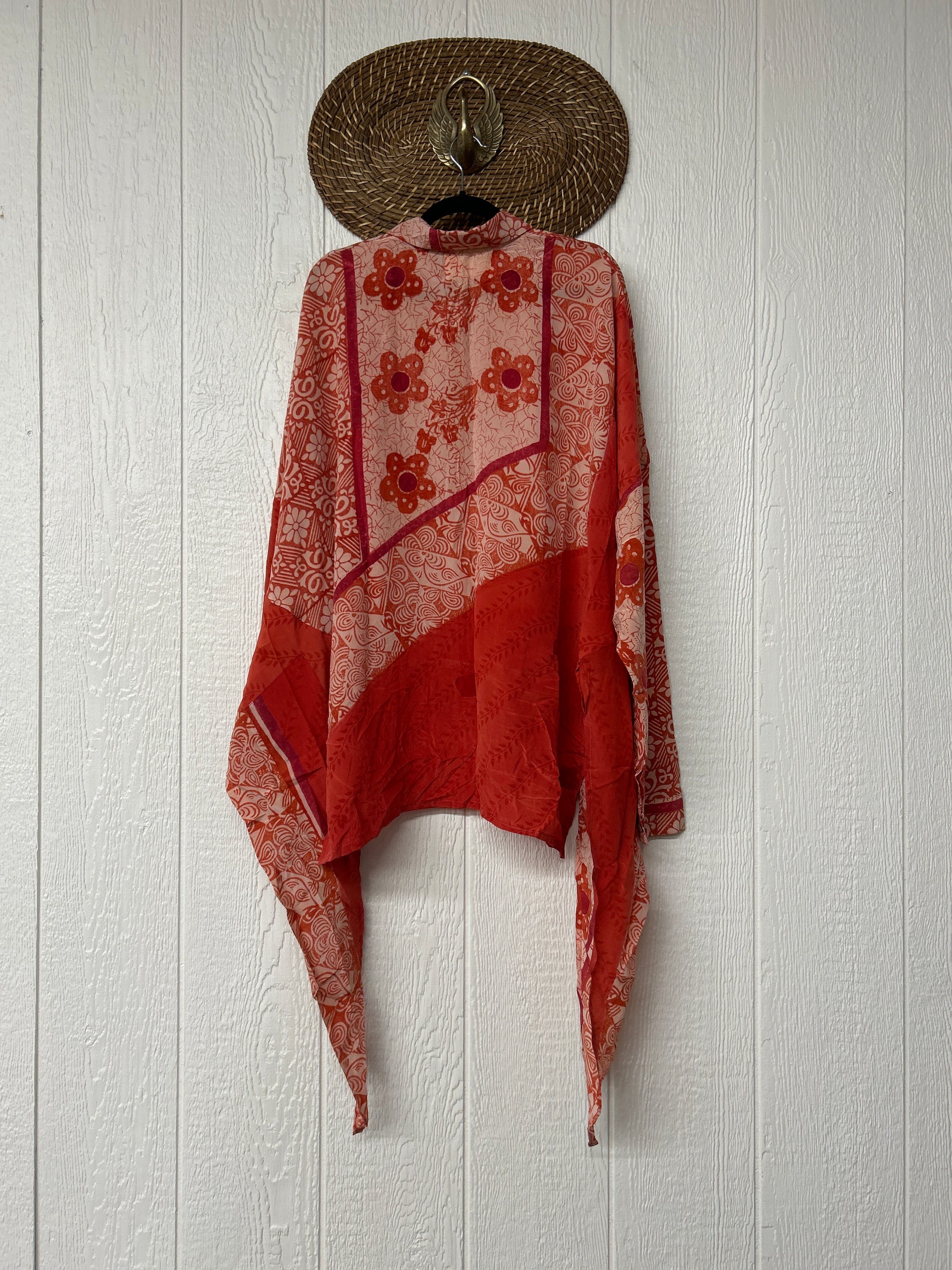 Crafted from our ultra lux vintage crepe sari this floaty dream features a Button-down placket with a high low hem, collar, and button cuffs.