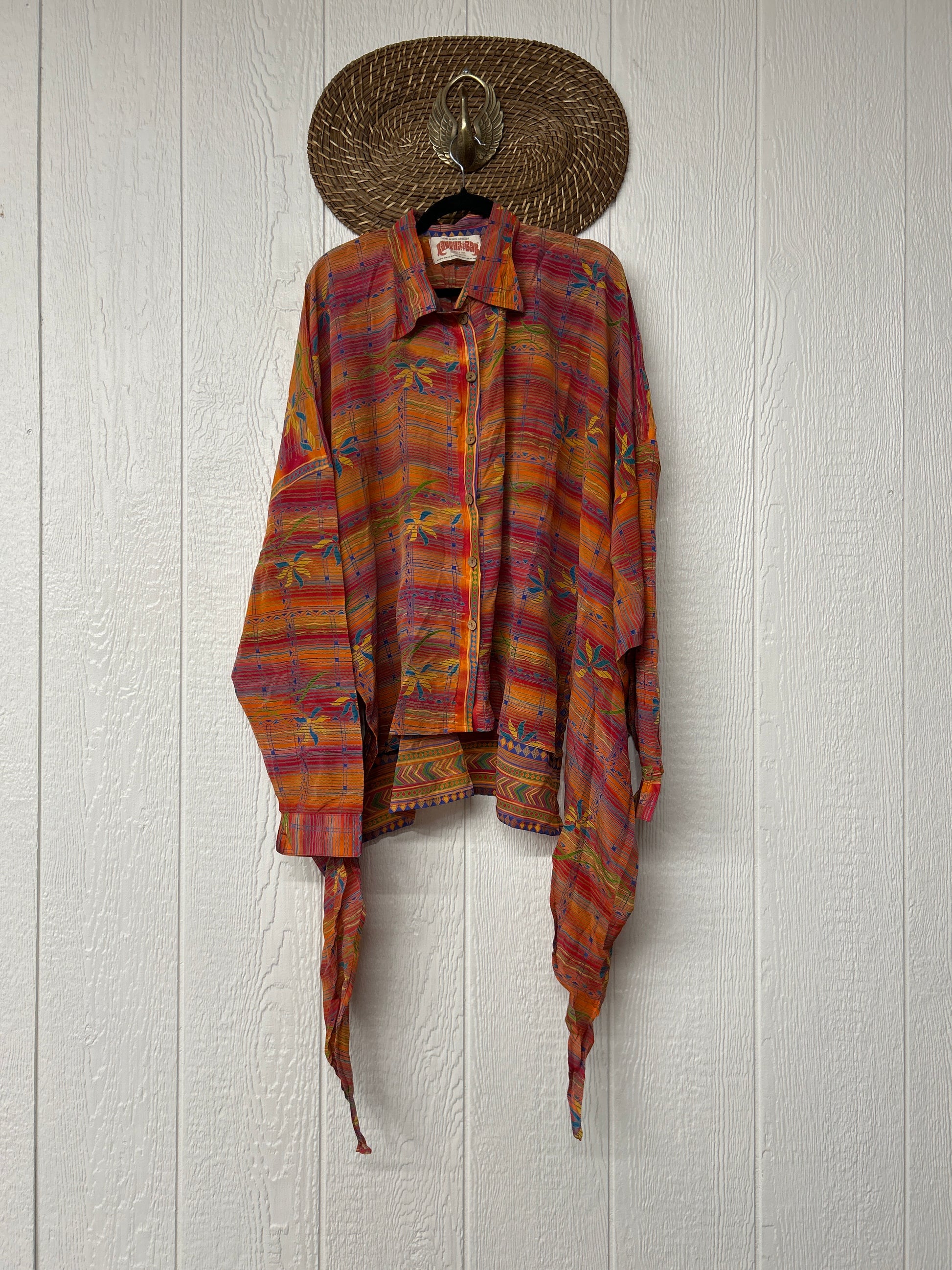 Crafted from our ultra lux vintage crepe sari this floaty dream features a Button-down placket with a high low hem, collar, and button cuffs.