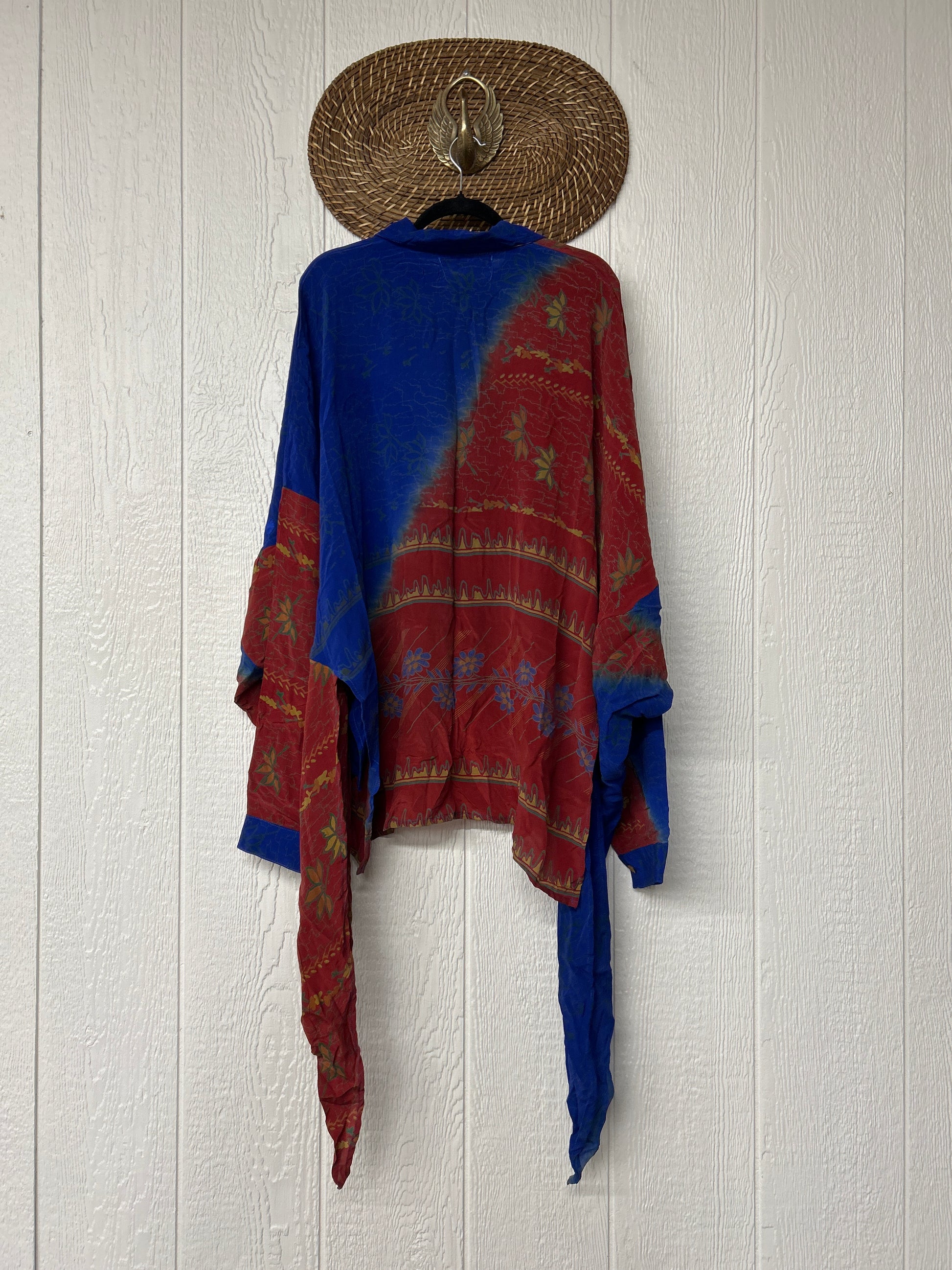 Crafted from our ultra lux vintage crepe sari this floaty dream features a Button-down placket with a high low hem, collar, and button cuffs.