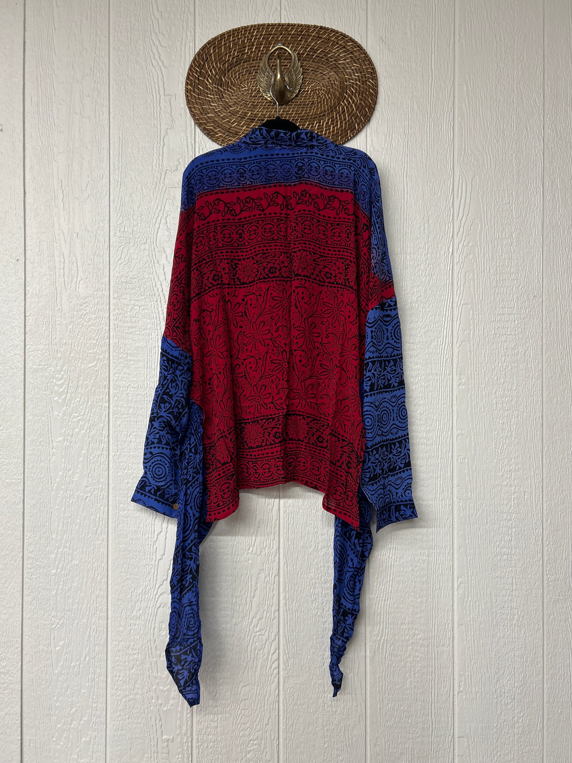 Crafted from our ultra lux vintage crepe sari this floaty dream features a Button-down placket with a high low hem, collar, and button cuffs.