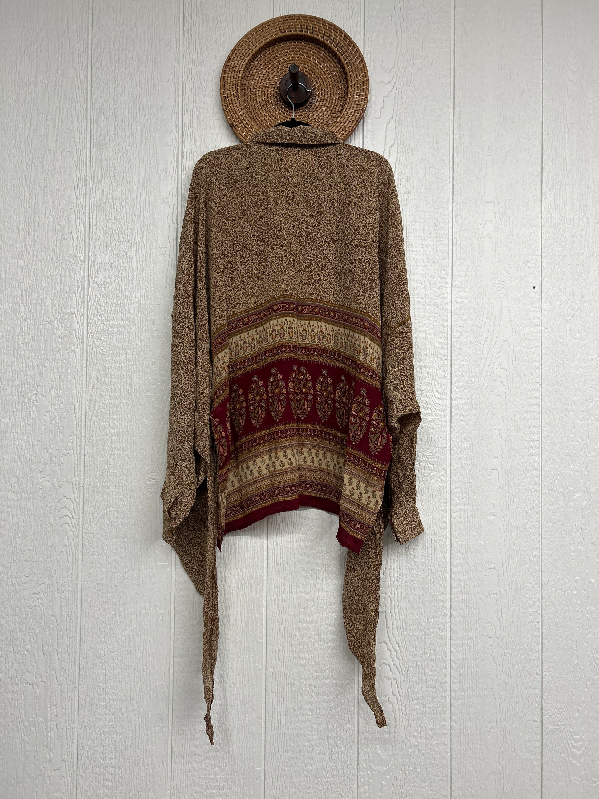 Crafted from our ultra lux vintage crepe sari this floaty dream features a Button-down placket with a high low hem, collar, and button cuffs.