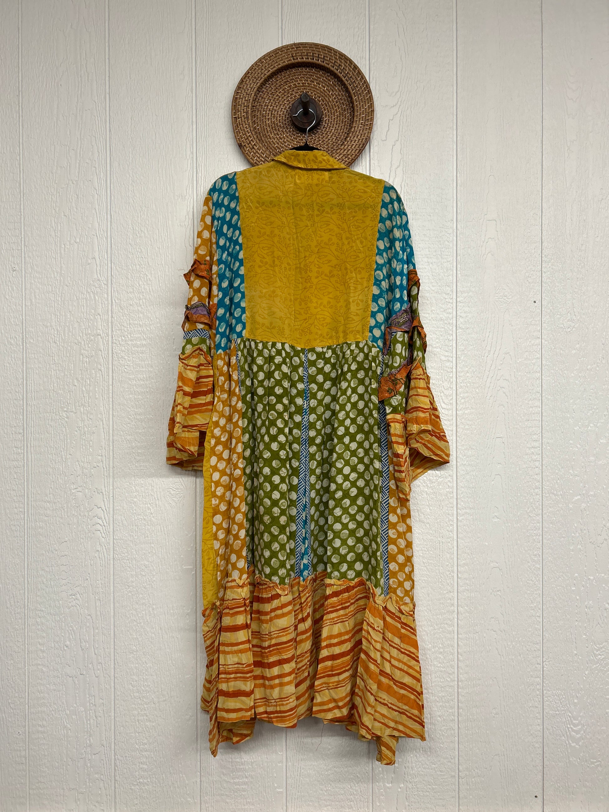 Disclosure: Our vintage styles have lived a full life before becoming the designs in our shop. Fabrics may have small threads or holes in the layers. Color inconsistency or small stains may be present. The saris are sewn together and extend the life of each design. Imperfections should be celebrated