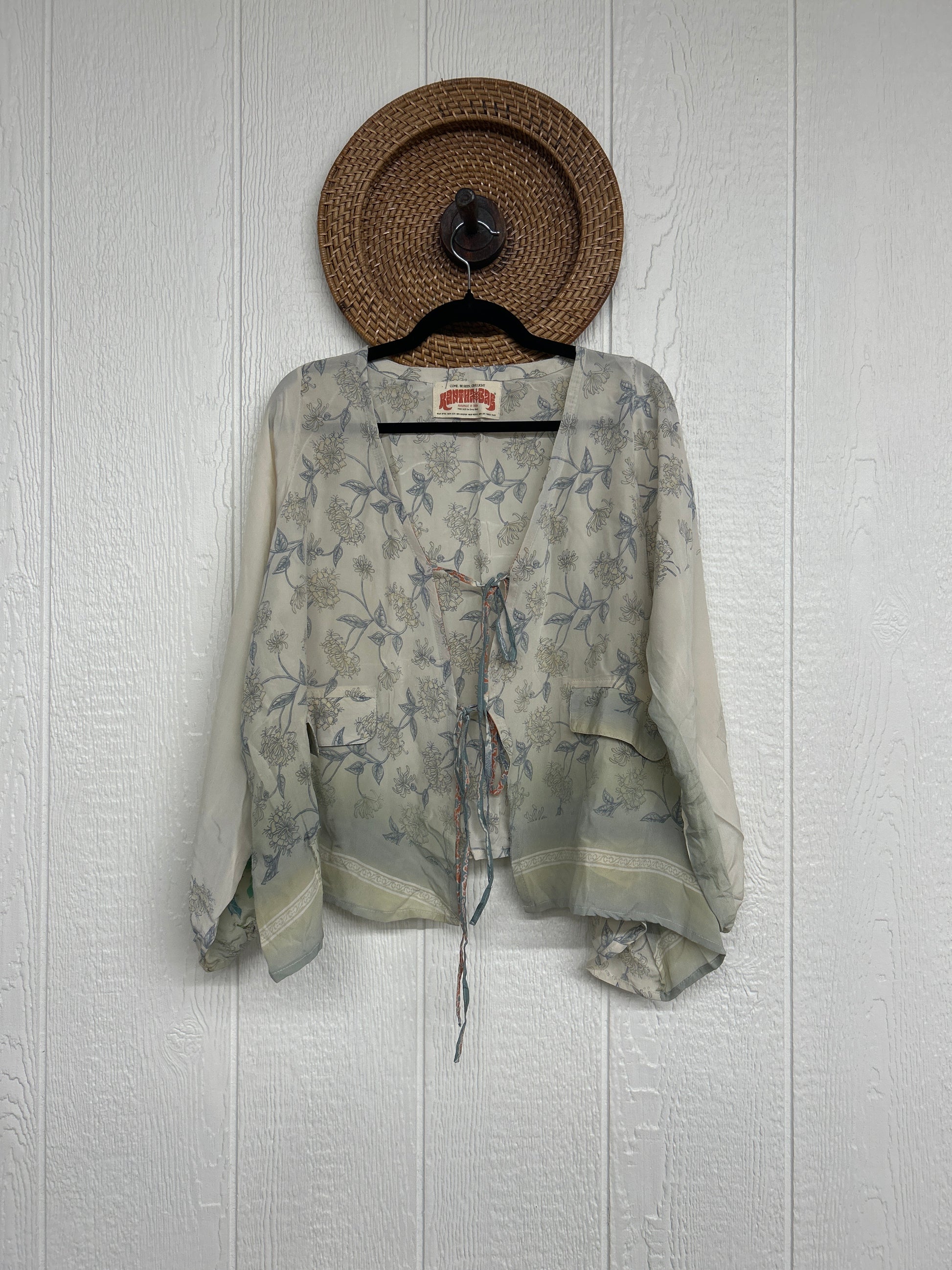 Crafted from our ultra lux crepe sari this dreamy piece features a vintage inspired floaty design with a double tie front closure and two pockets on the front panel.