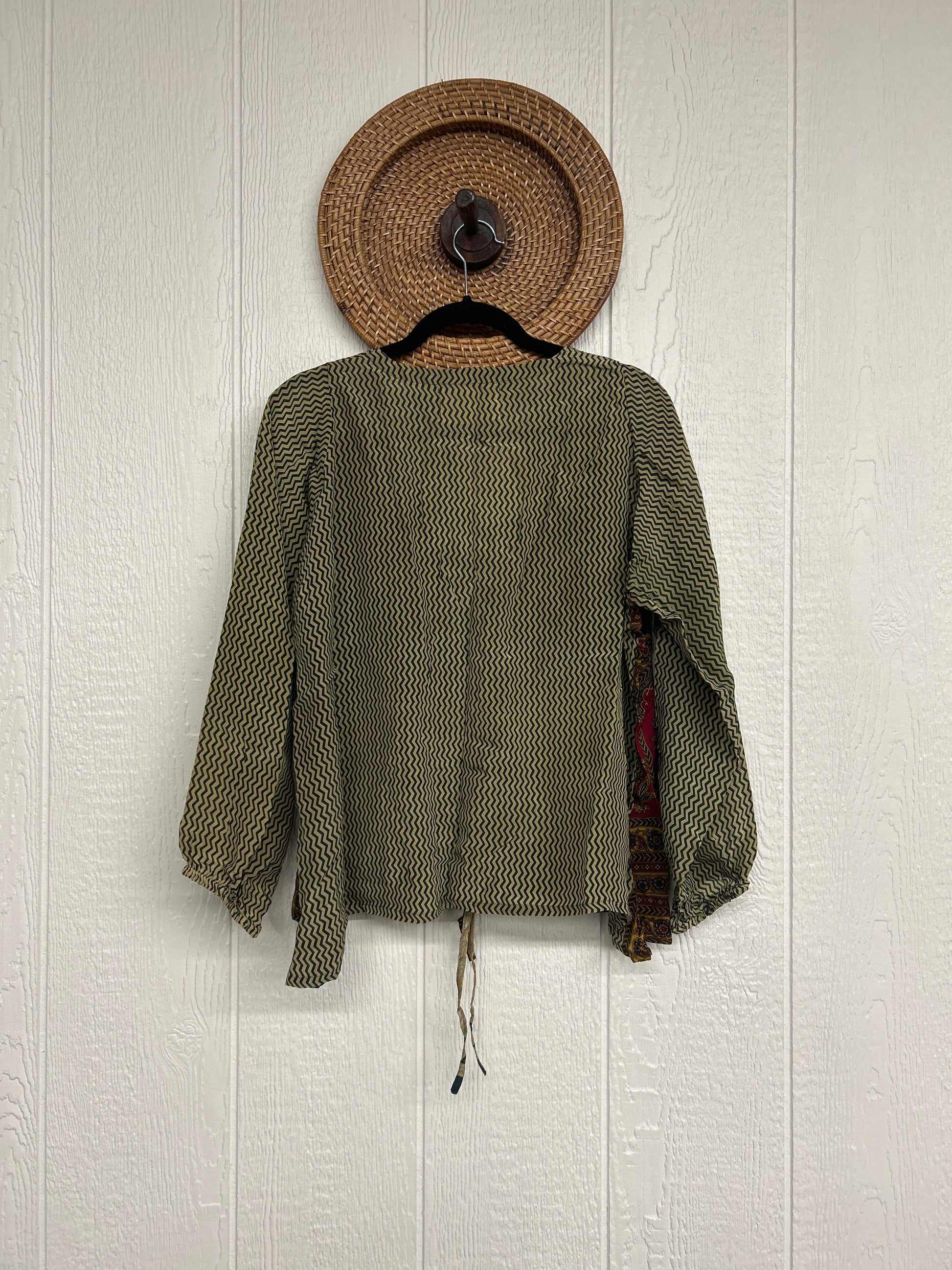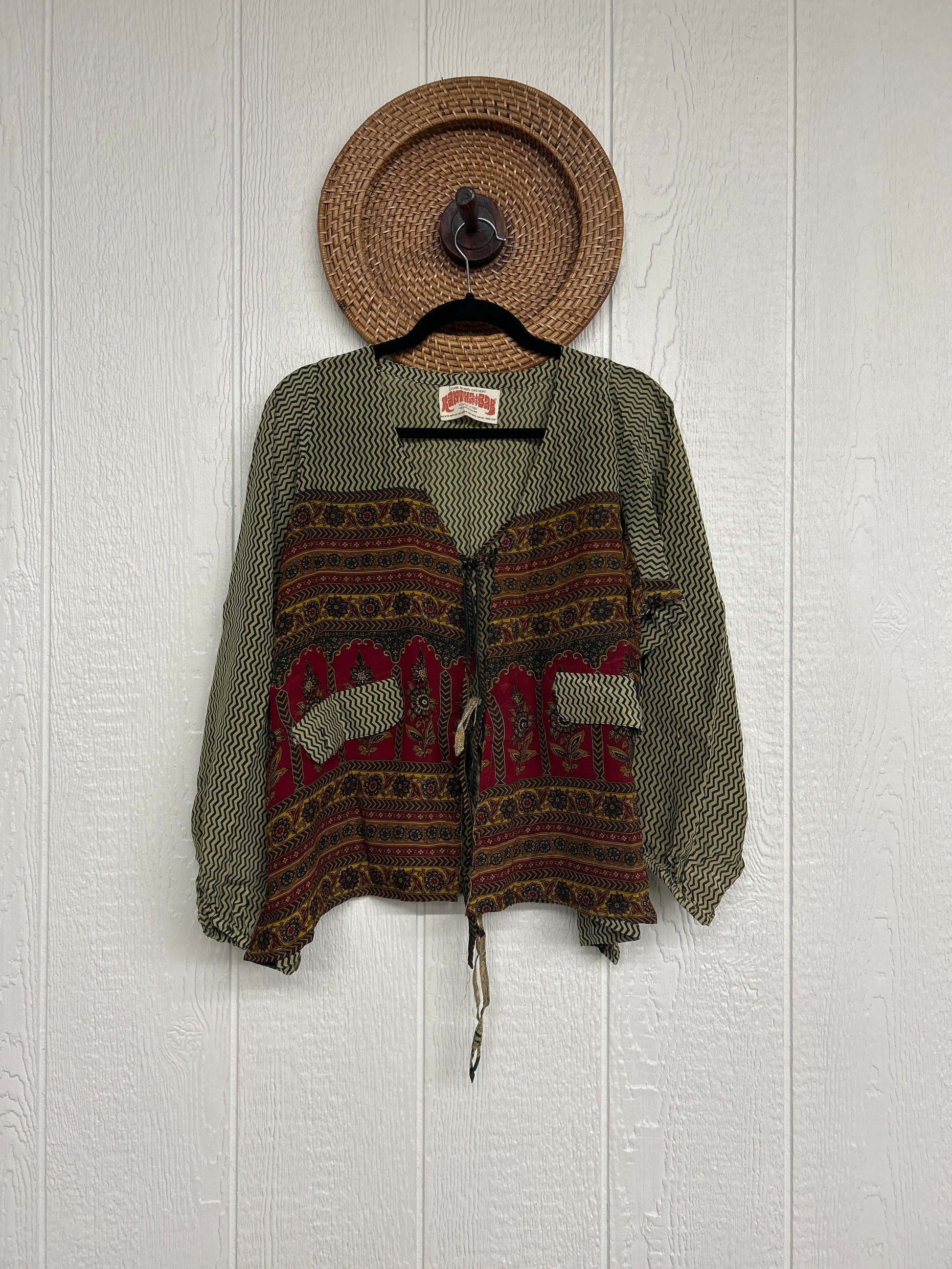 Disclosure: Our vintage styles have lived a full life before becoming the designs in our shop. Fabrics may have small threads or holes in the layers. Color inconsistency or small stains may be present. The saris are sewn together and extend the life of each design.