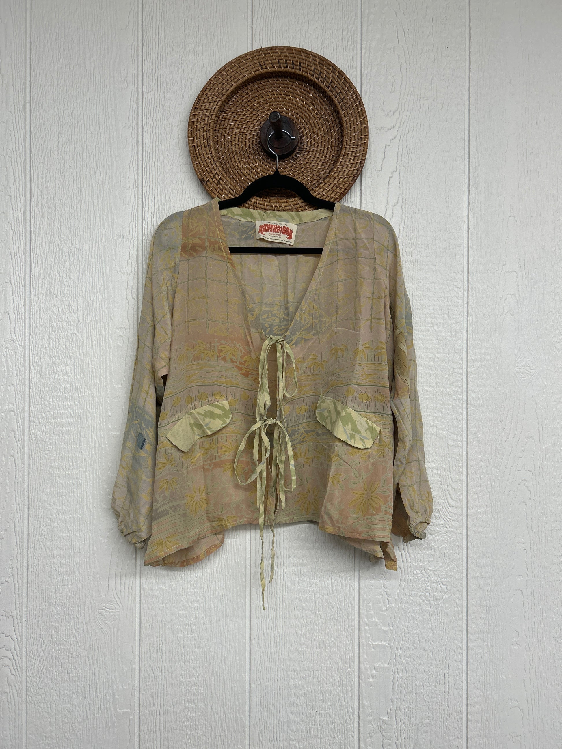 Crafted from our ultra lux crepe sari this dreamy piece features a vintage inspired floaty design with a double tie front closure and two pockets on the front panel.