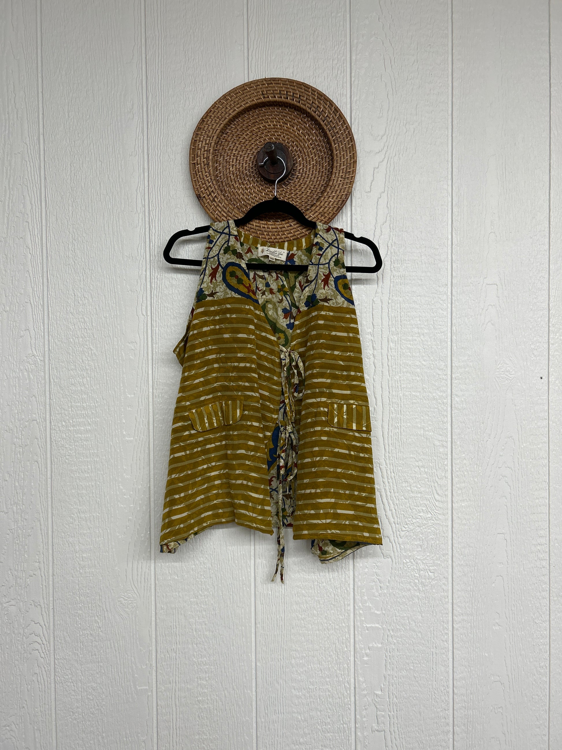 Disclosure: Our vintage styles have lived a full life before becoming the designs in our shop. Fabrics may have small threads or holes in the layers. Color inconsistency or small stains may be present. The saris are sewn together and extend the life of each design.