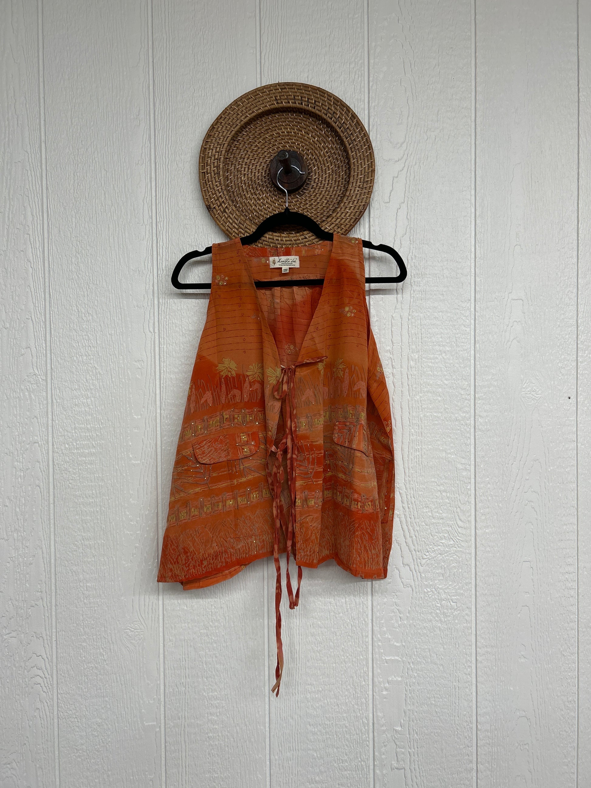 Crafted from our ultra lux crepe silk sari this dreamy completer piece features a vintage inspired floaty design with a double tie front closure and two pockets on the front panel.