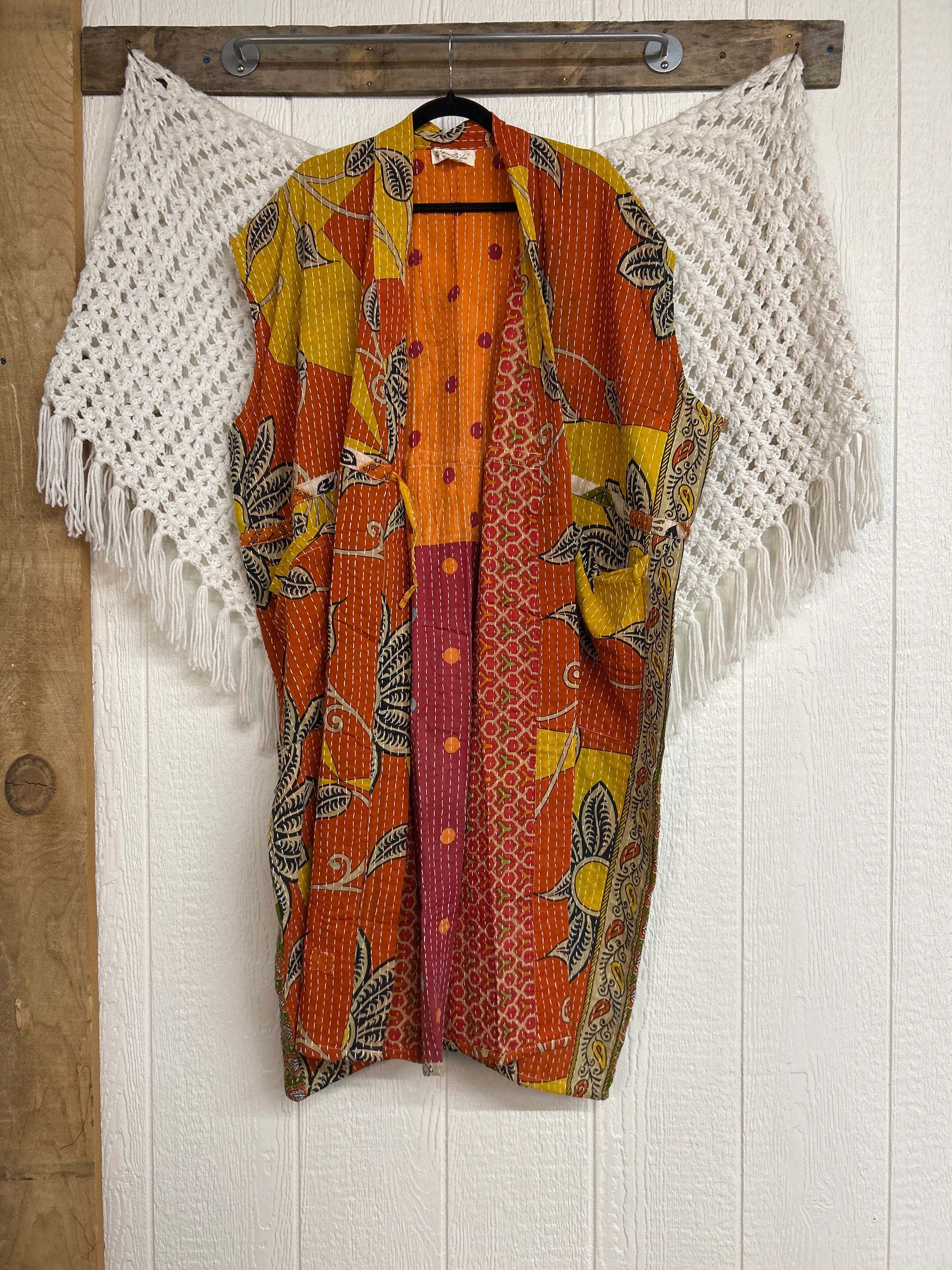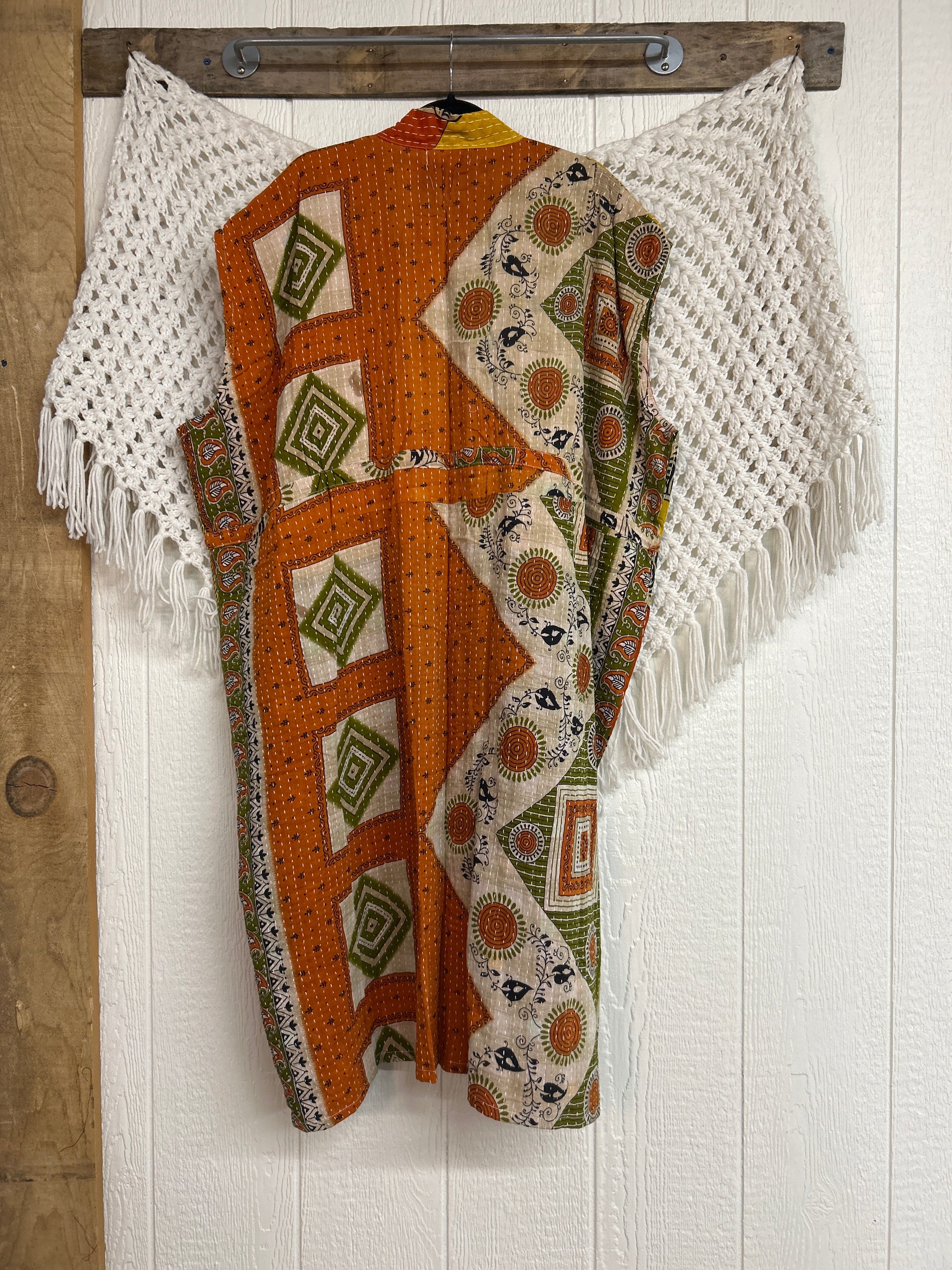 This groovy statement piece is crafted from our ultra lux kantha stitch vintage cotton sari.