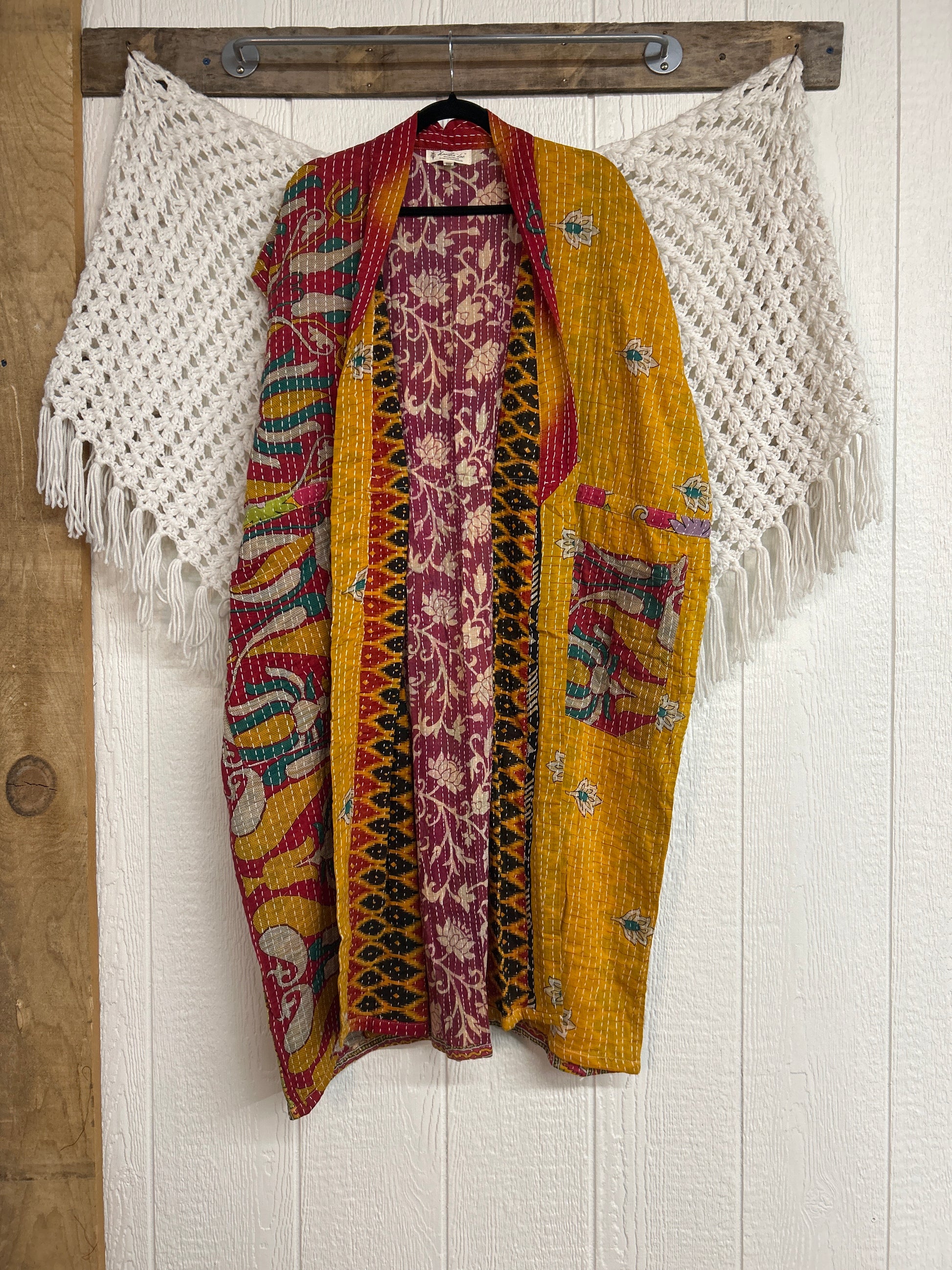 This groovy statement piece is crafted from our ultra lux kantha stitch vintage cotton sari.