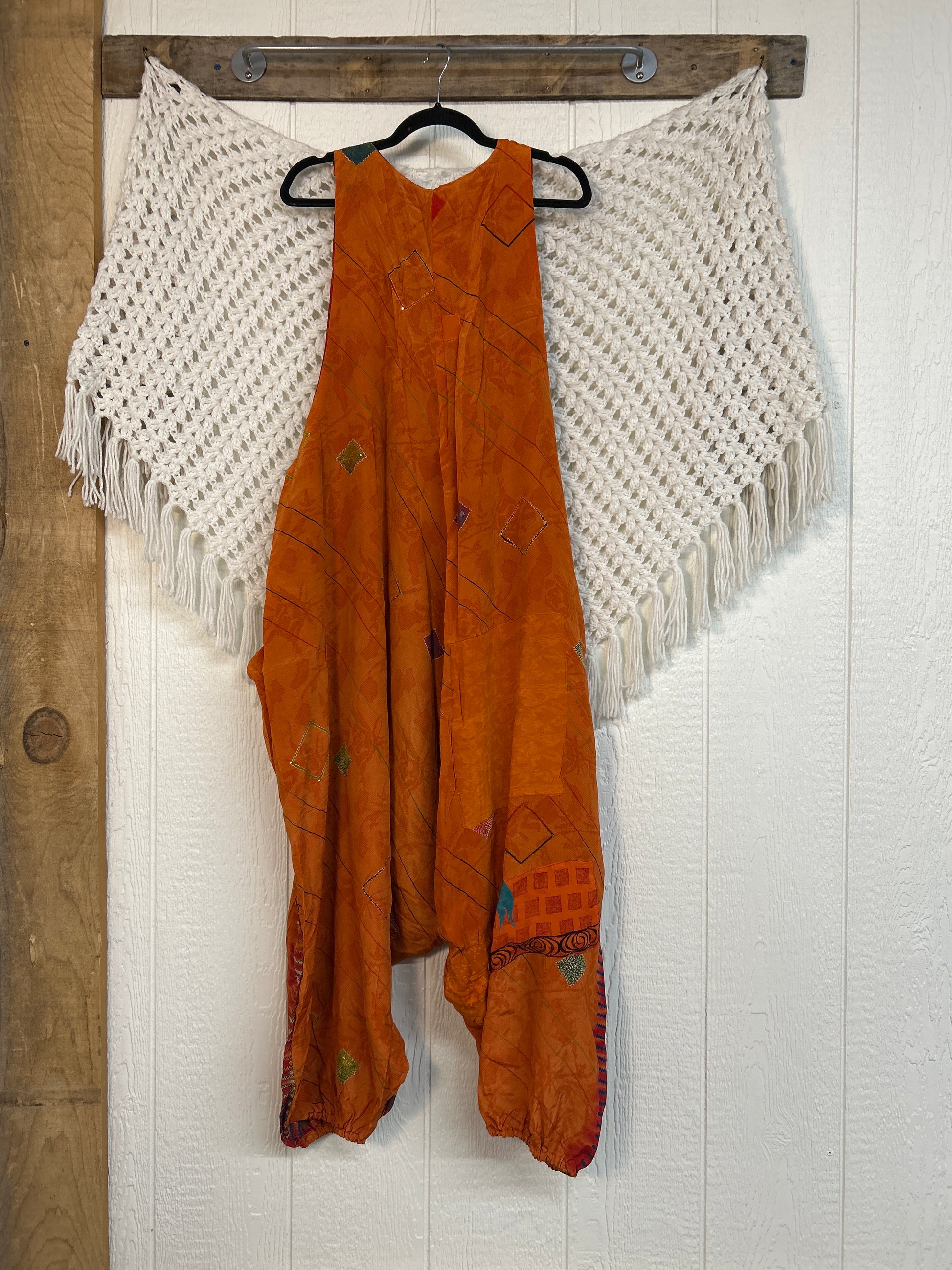 Crafted from our ultra lux vintage double crepe sari, this floaty wonder features a moderate drop couch, elastic at the legs, slouchy pockets