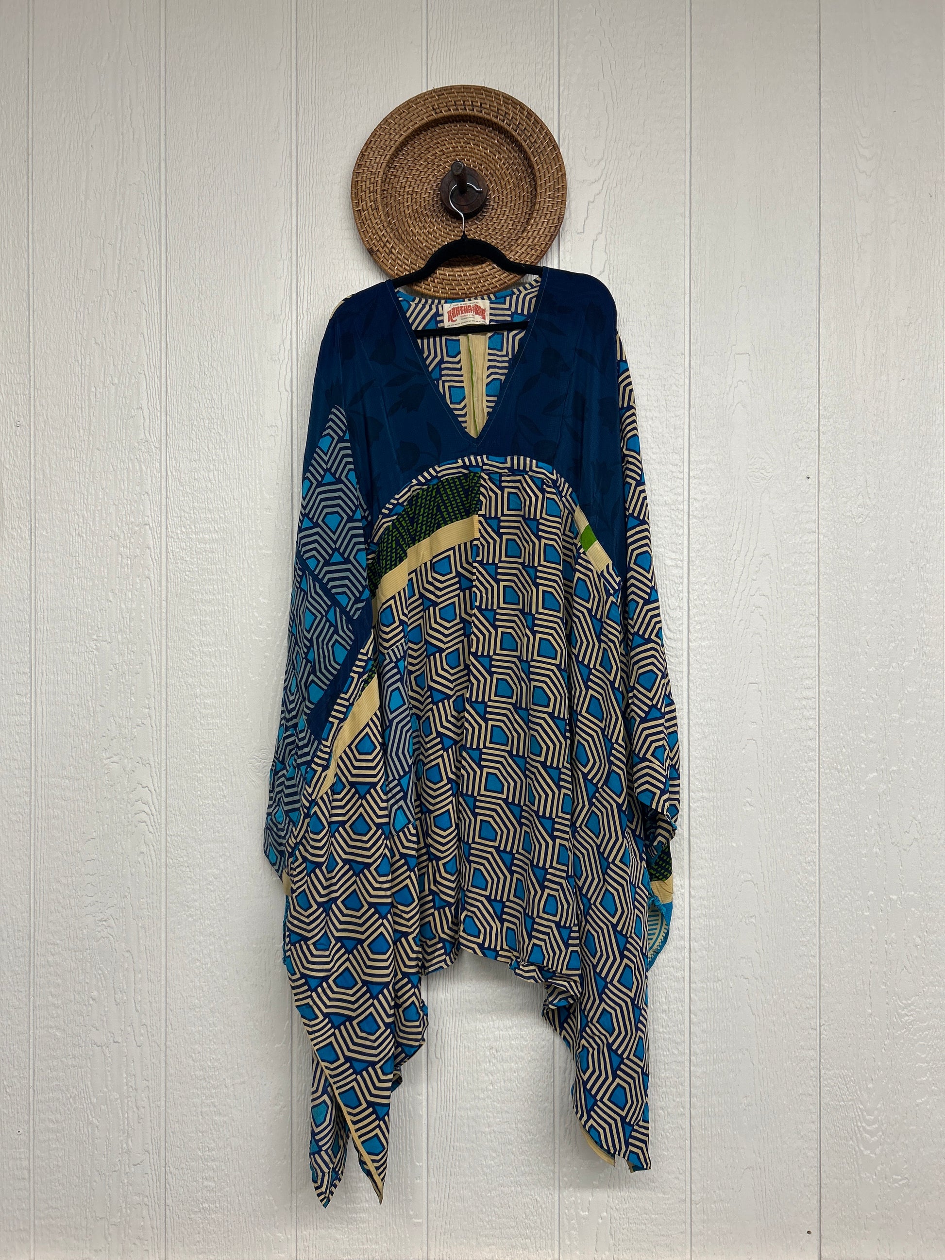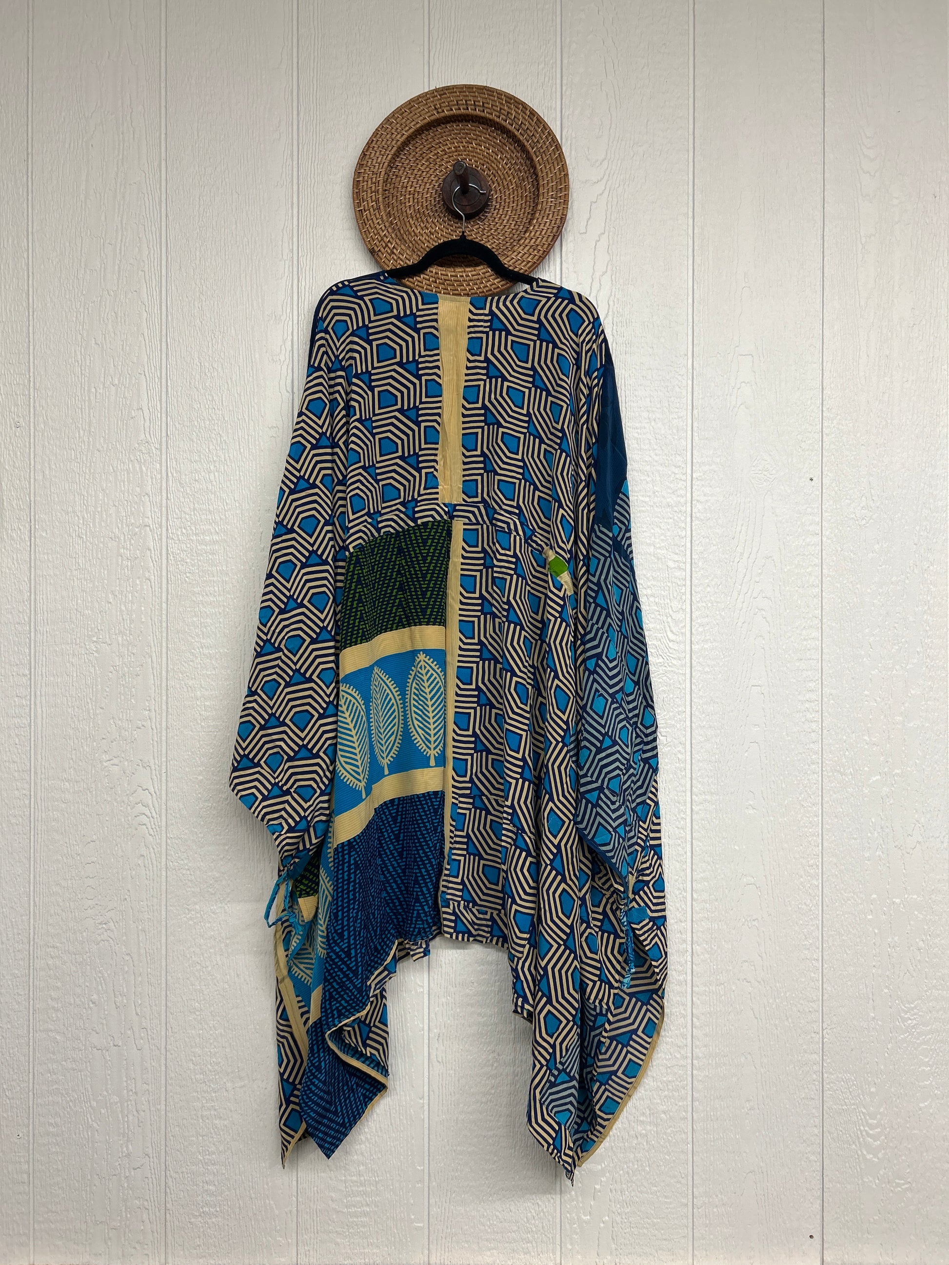 Fabrics may have small threads or holes in the layers. Color inconsistency or small stains may be present. The saris are sewn together and extend the life of each design.