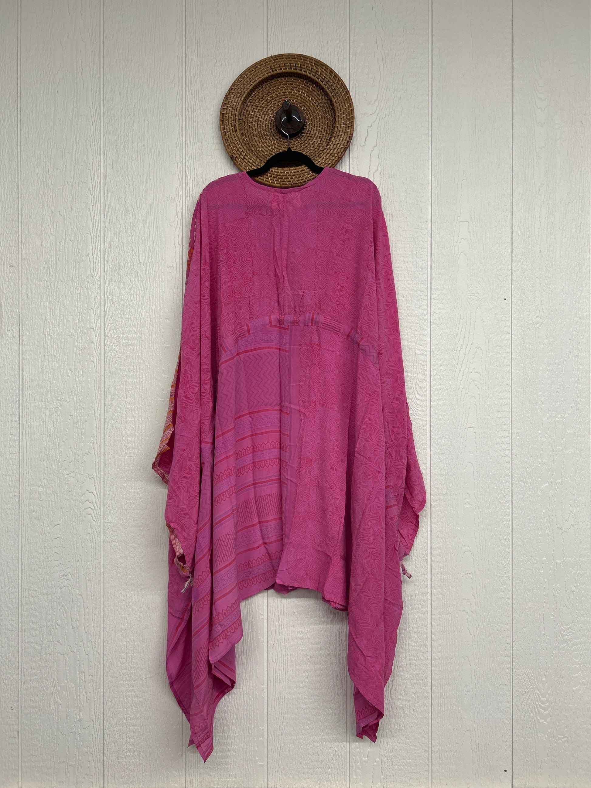 Fabrics may have small threads or holes in the layers. Color inconsistency or small stains may be present. The saris are sewn together and extend the life of each design.