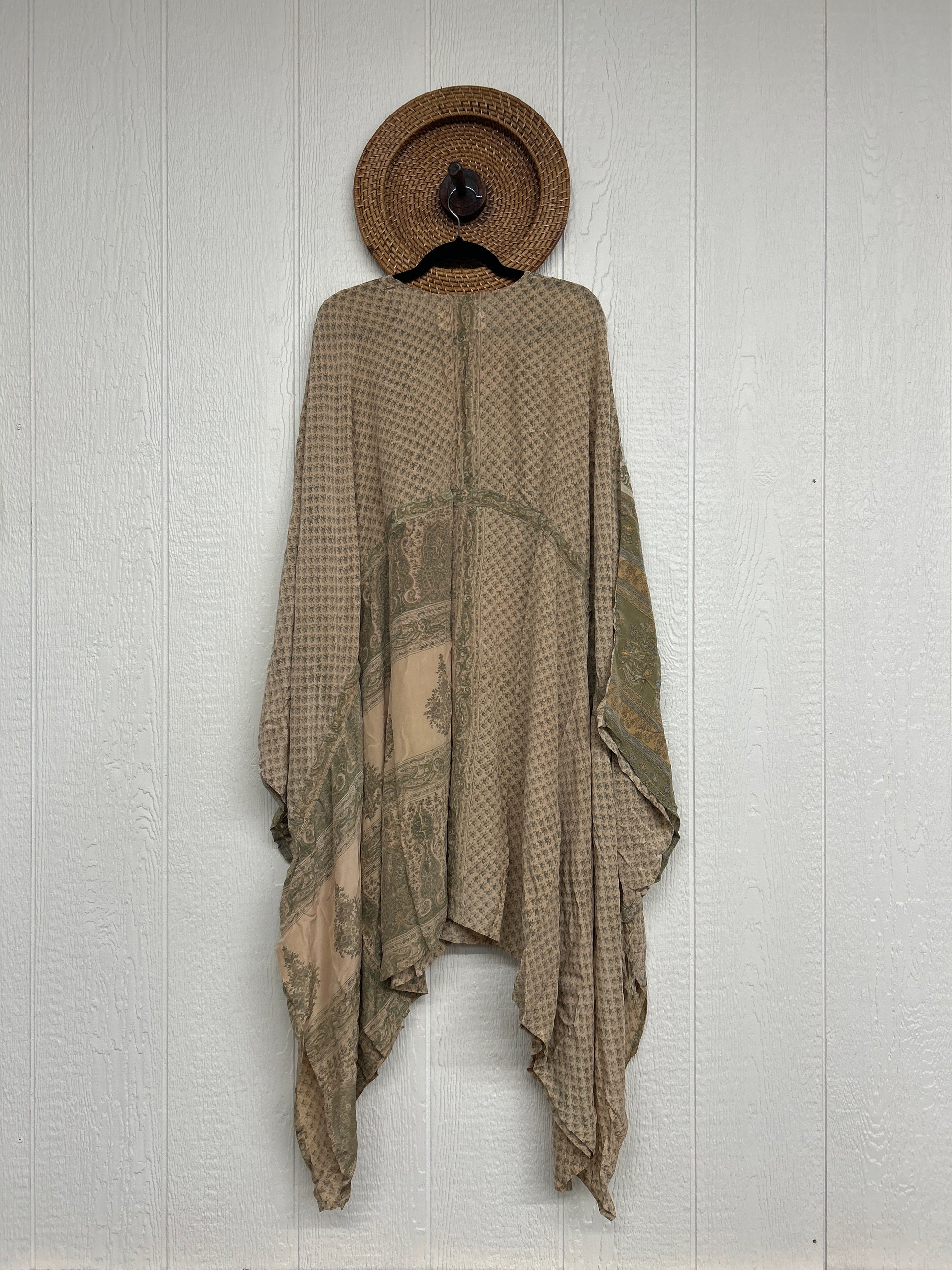 Fabrics may have small threads or holes in the layers. Color inconsistency or small stains may be present. The saris are sewn together and extend the life of each design.