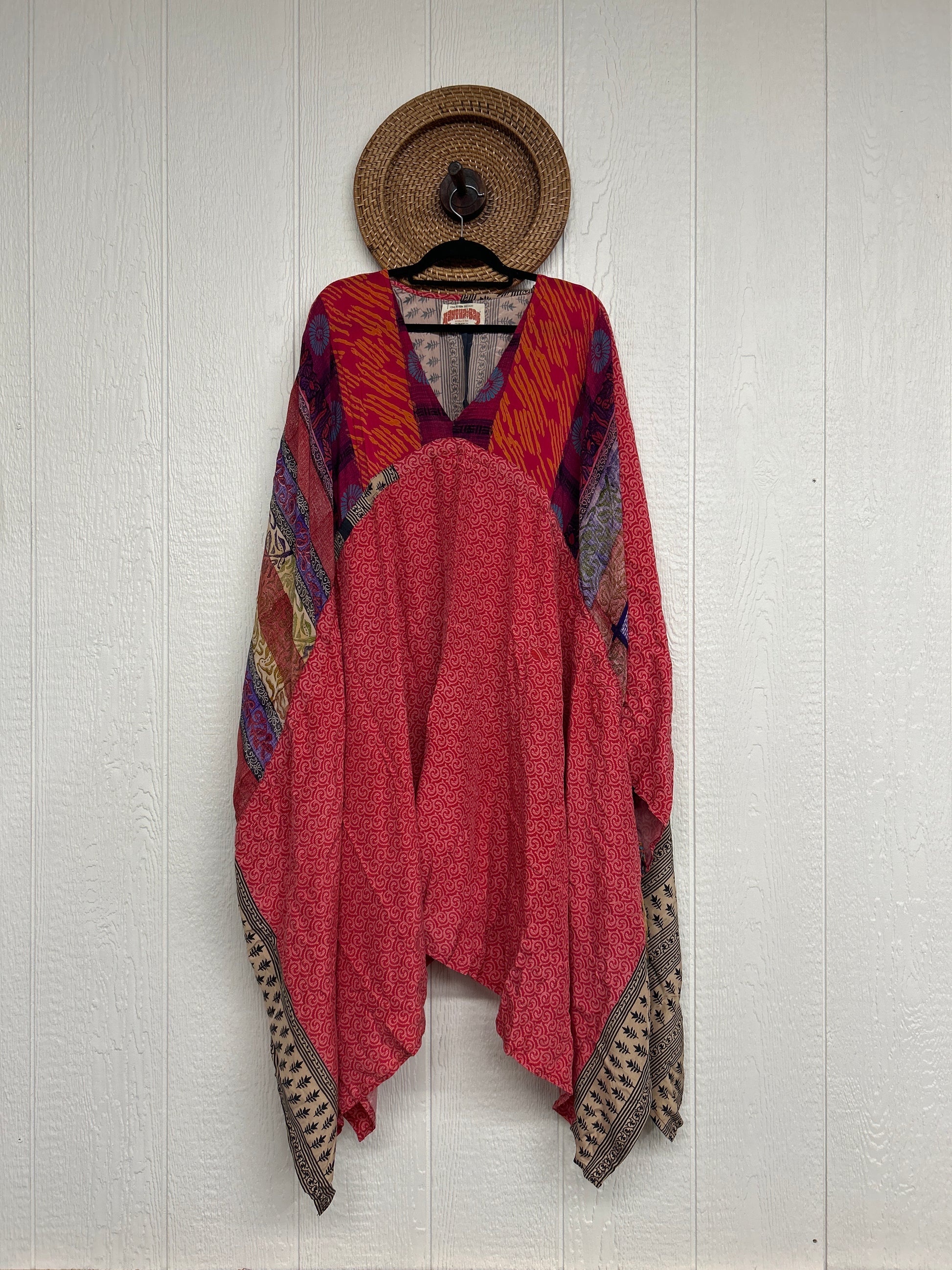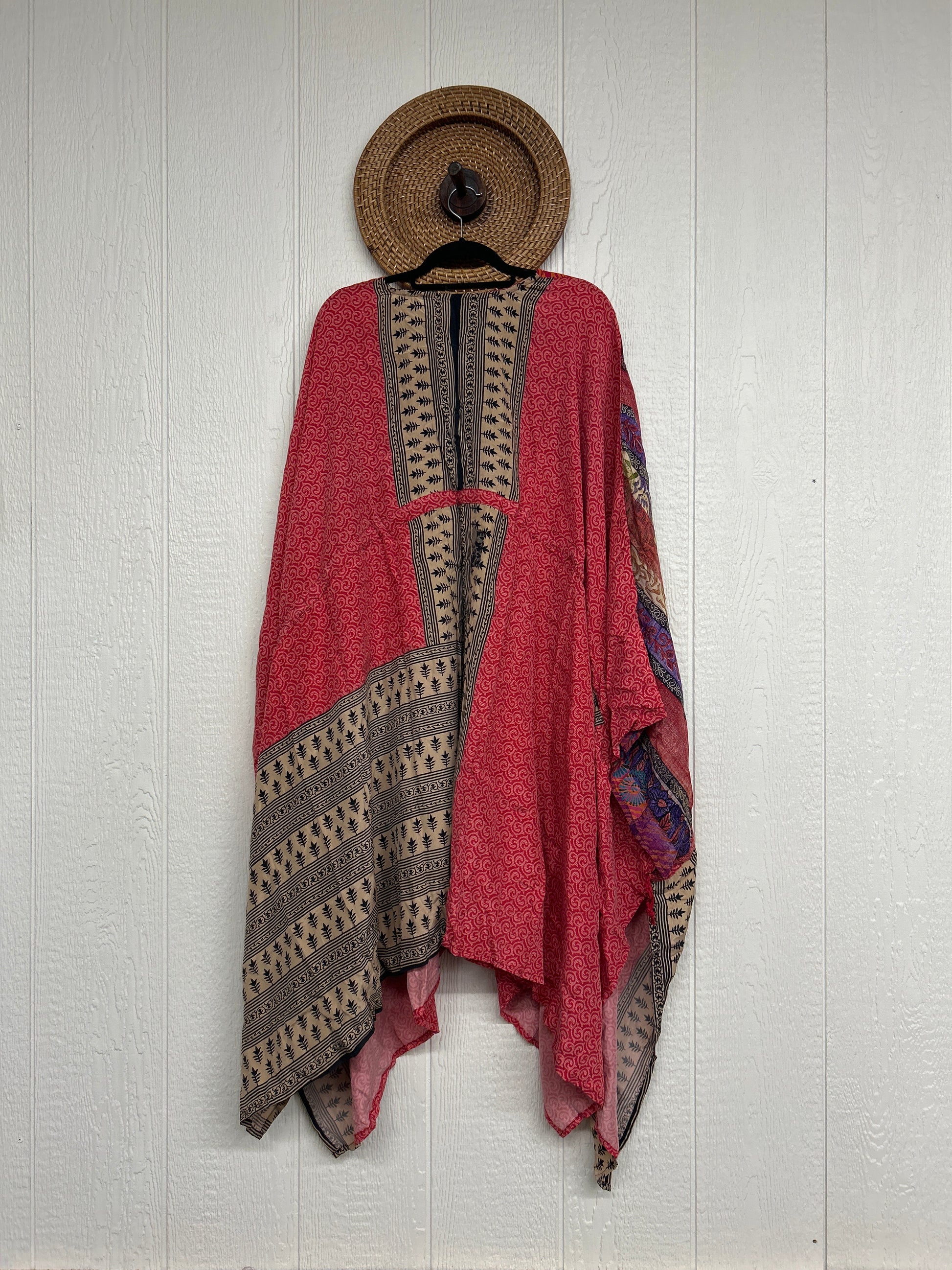 Fabrics may have small threads or holes in the layers. Color inconsistency or small stains may be present. The saris are sewn together and extend the life of each design.