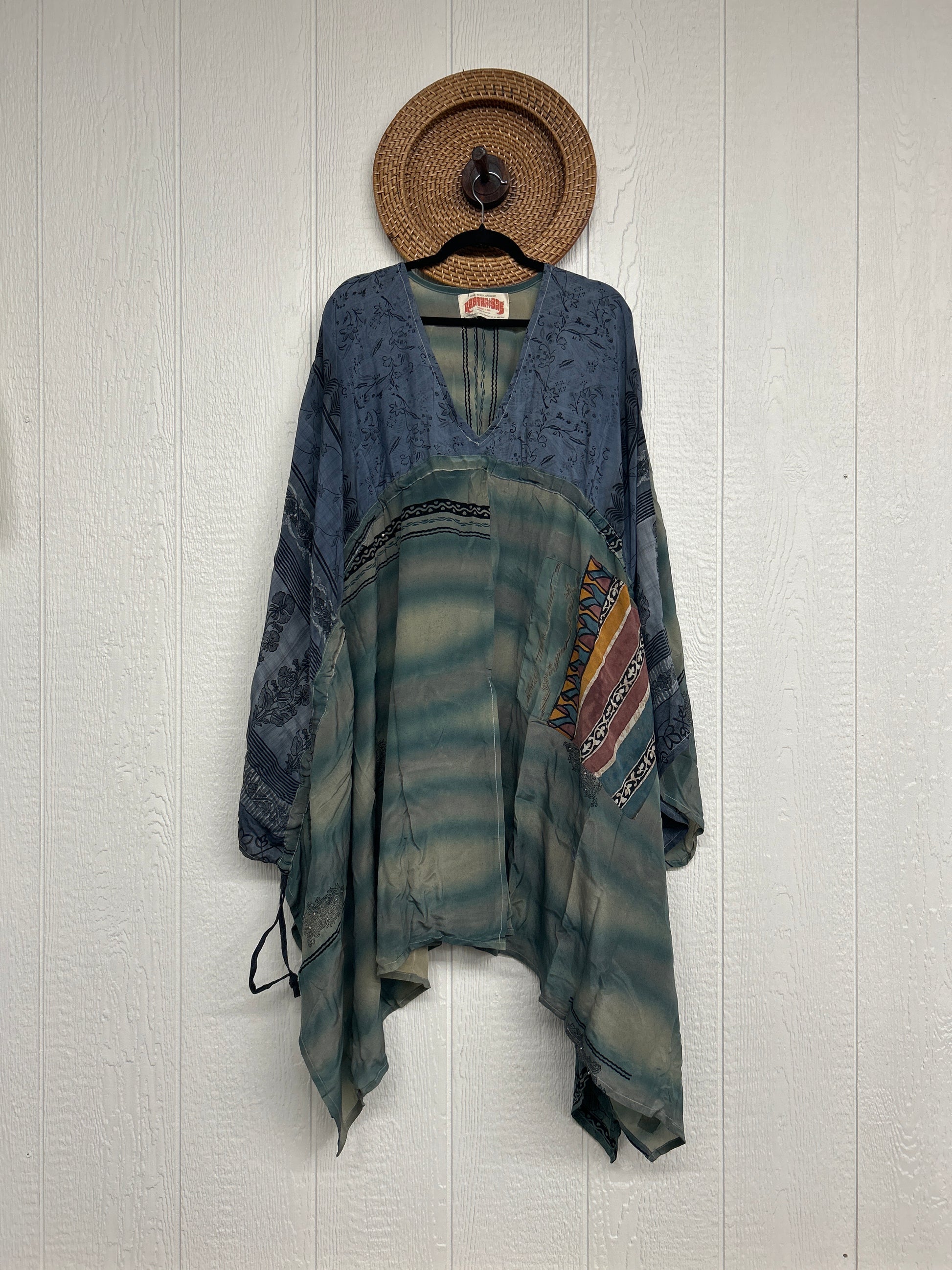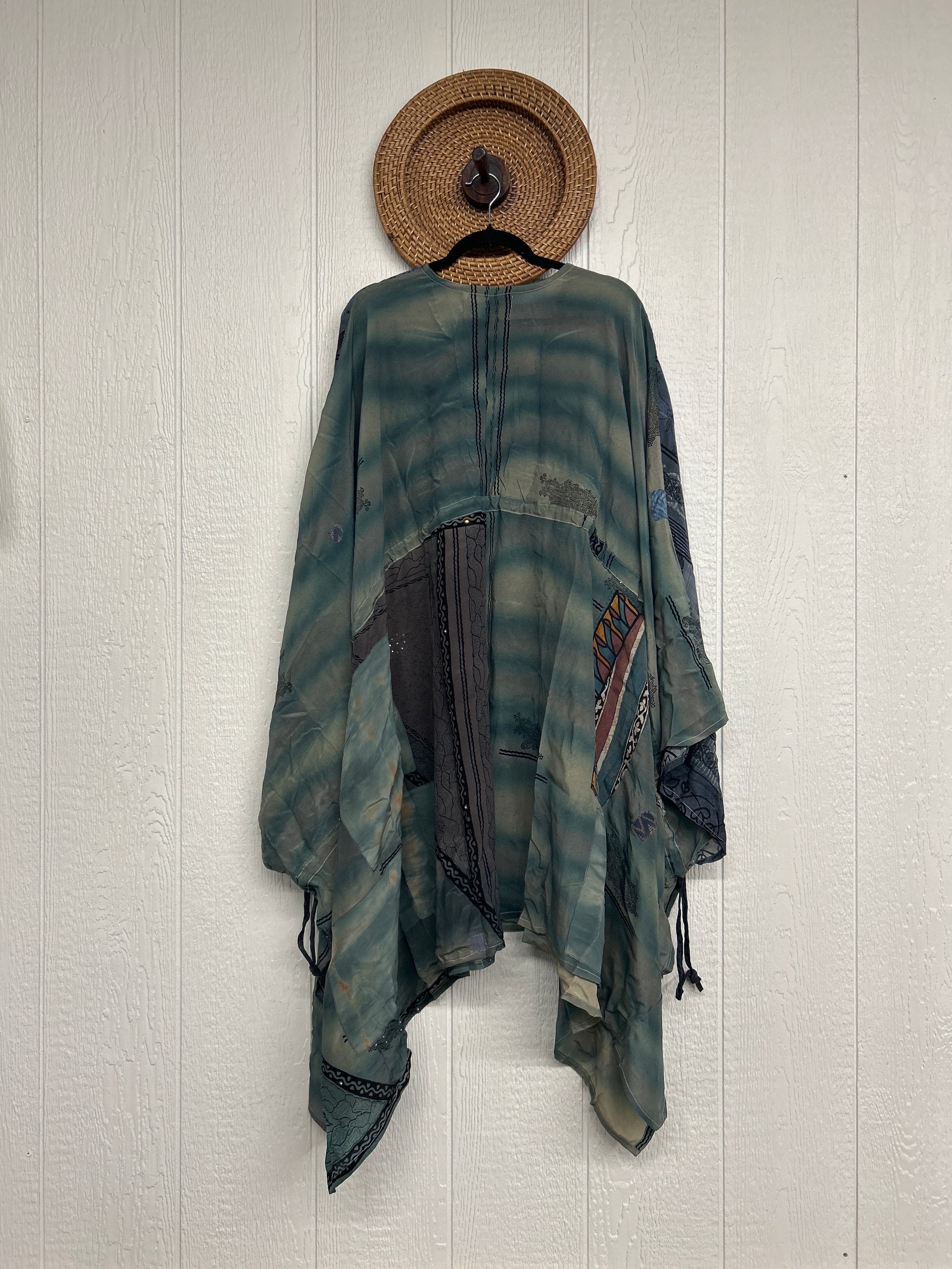 Fabrics may have small threads or holes in the layers. Color inconsistency or small stains may be present. The saris are sewn together and extend the life of each design.