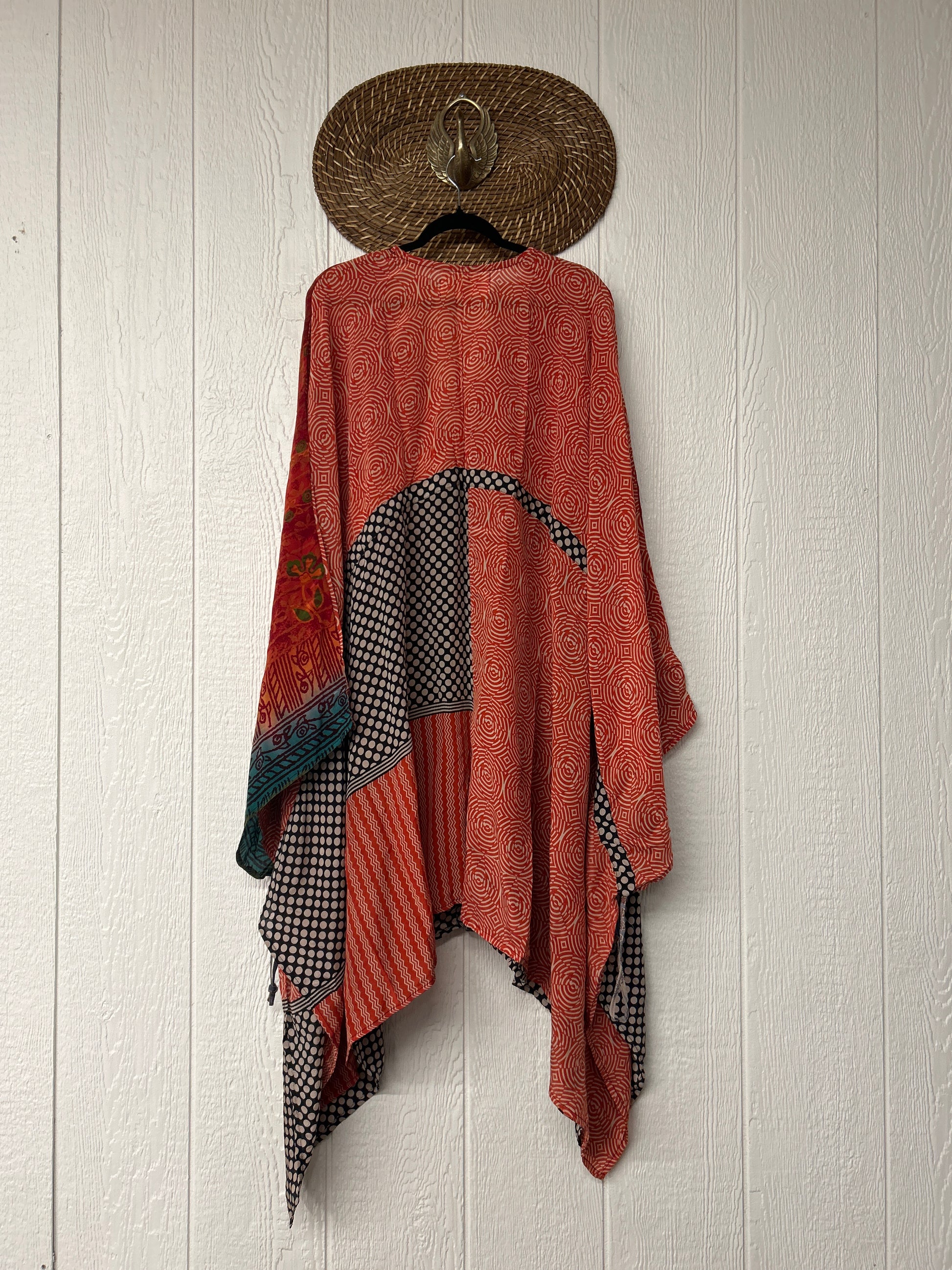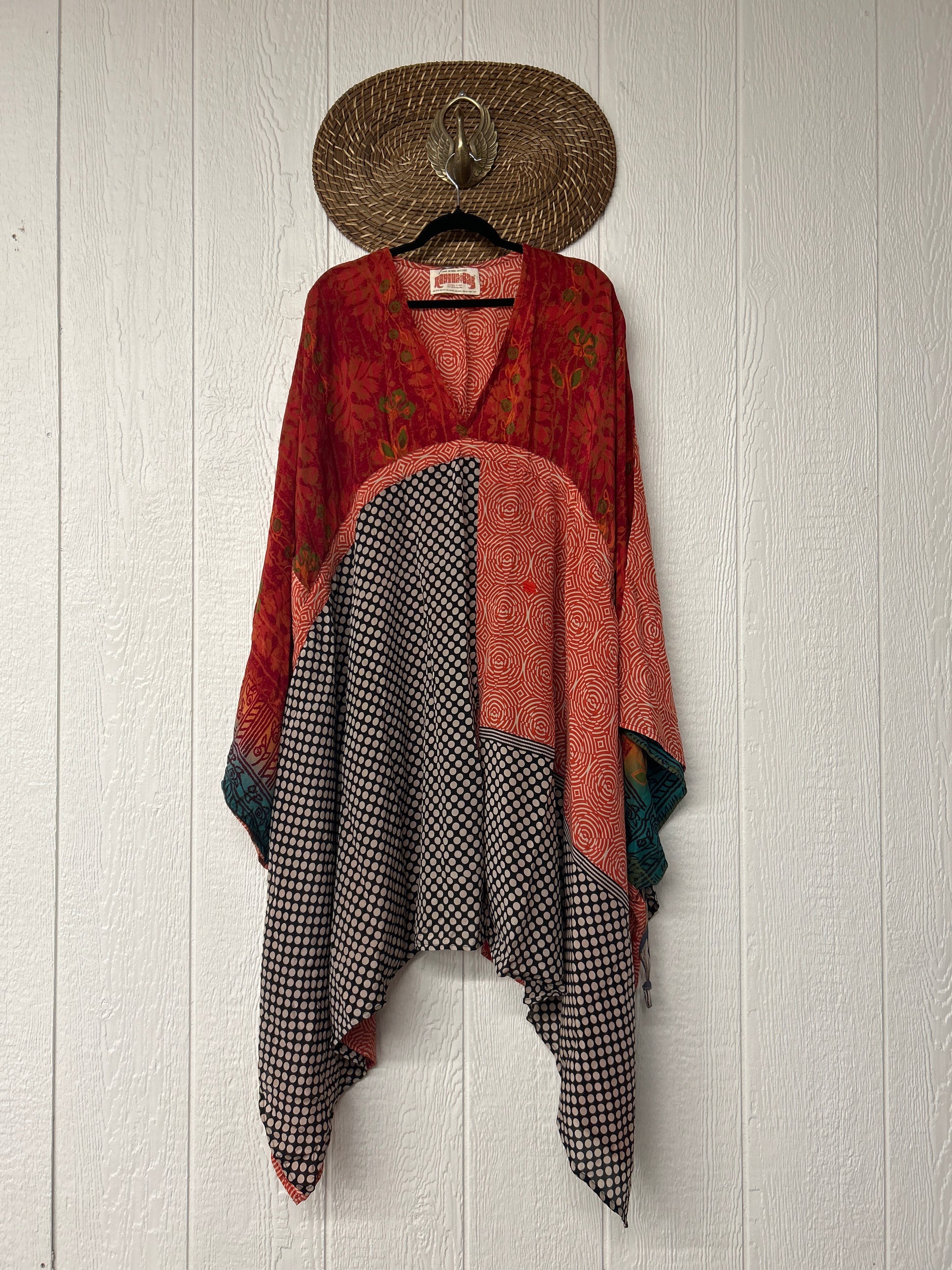 Fabrics may have small threads or holes in the layers. Color inconsistency or small stains may be present. The saris are sewn together and extend the life of each design.