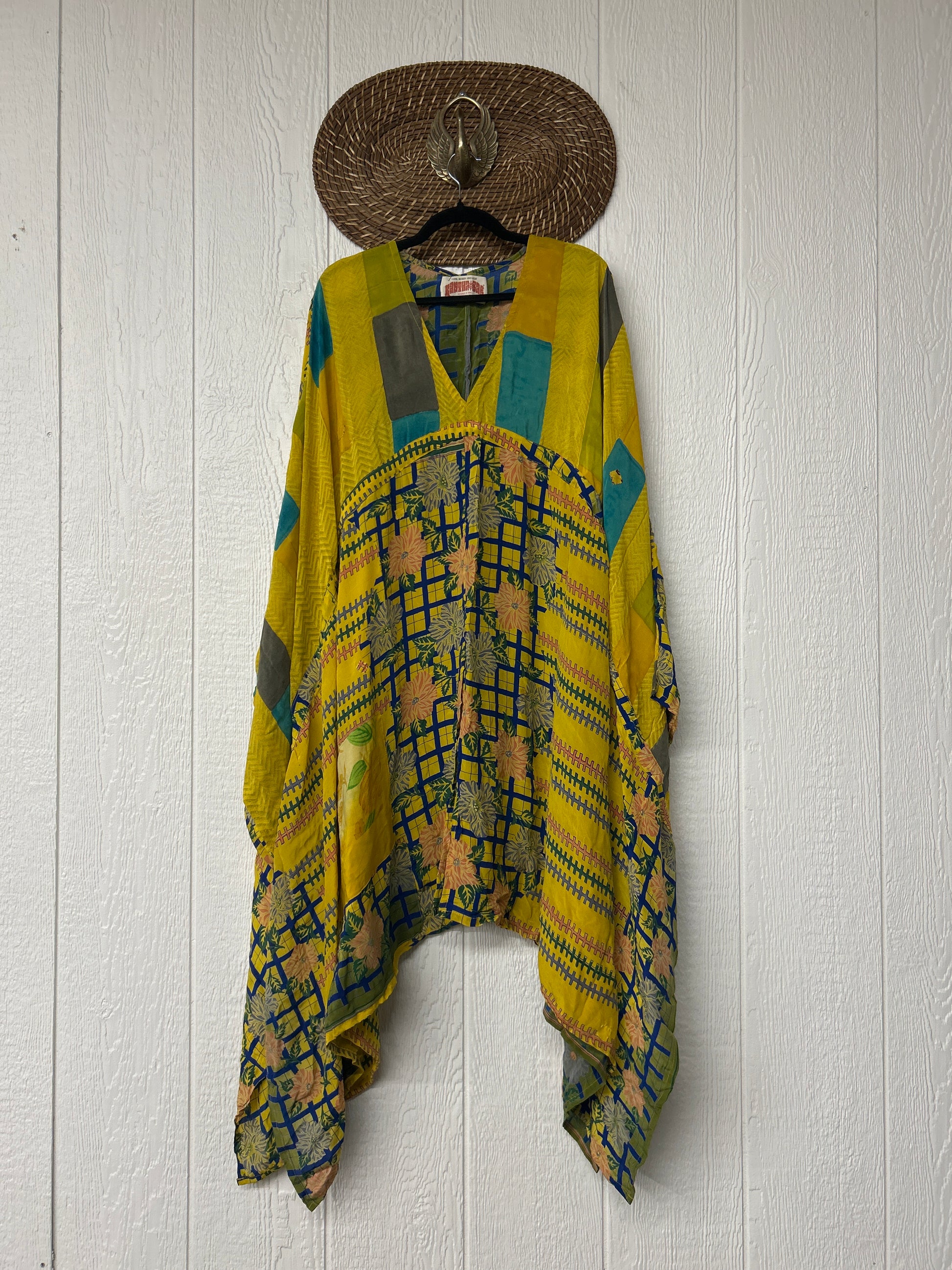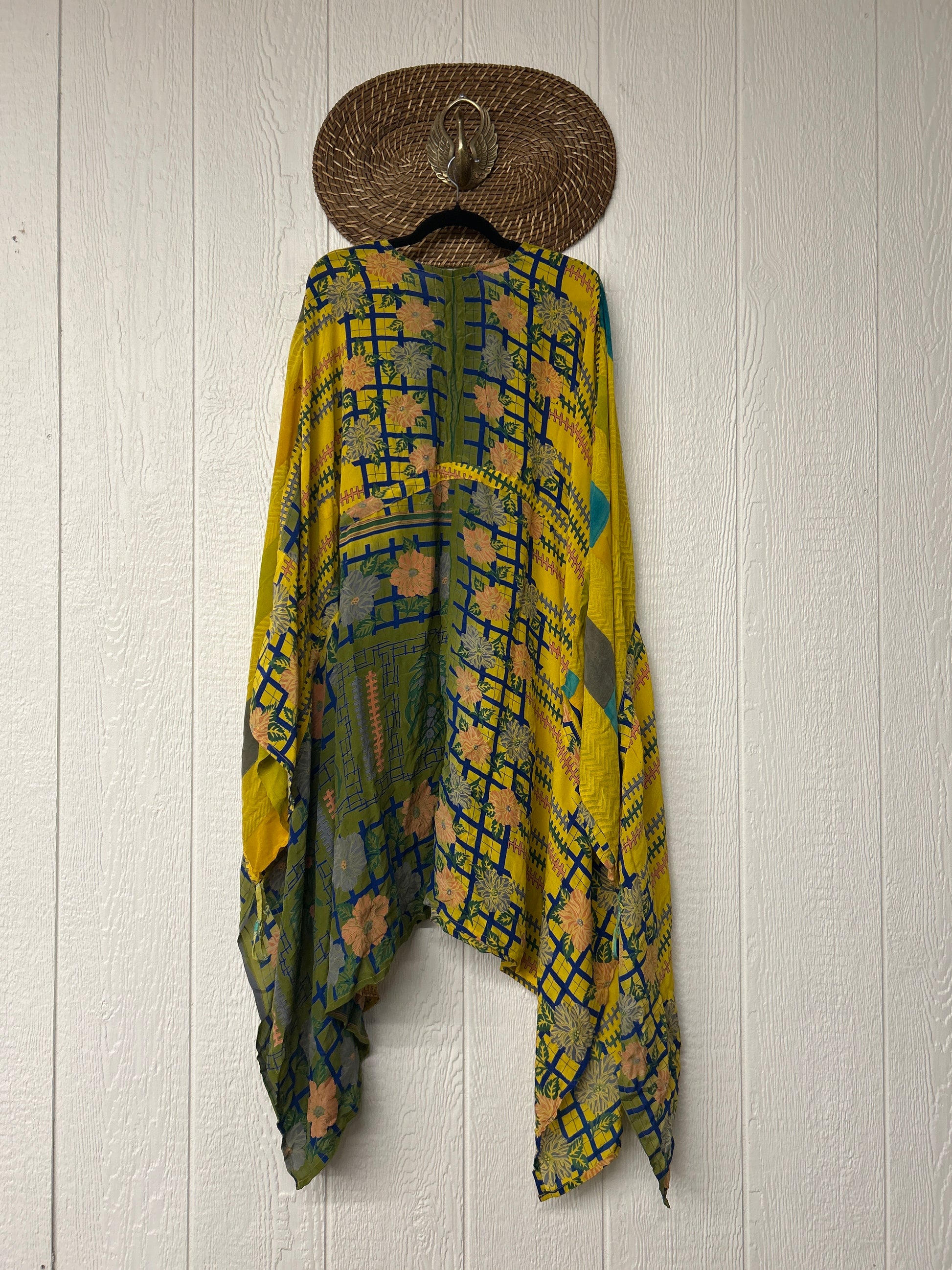 Fabrics may have small threads or holes in the layers. Color inconsistency or small stains may be present. The saris are sewn together and extend the life of each design.