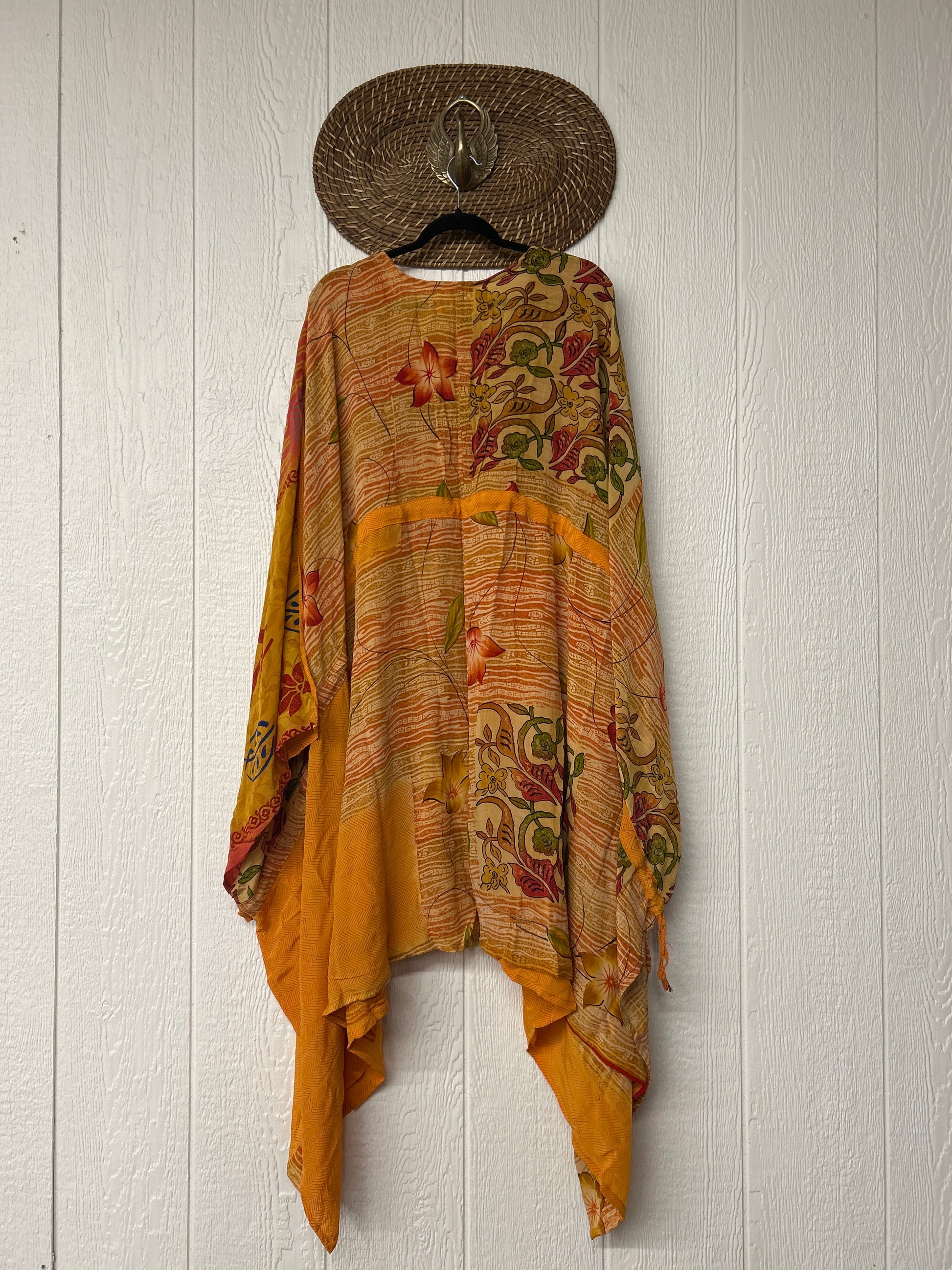 Fabrics may have small threads or holes in the layers. Color inconsistency or small stains may be present. The saris are sewn together and extend the life of each design.