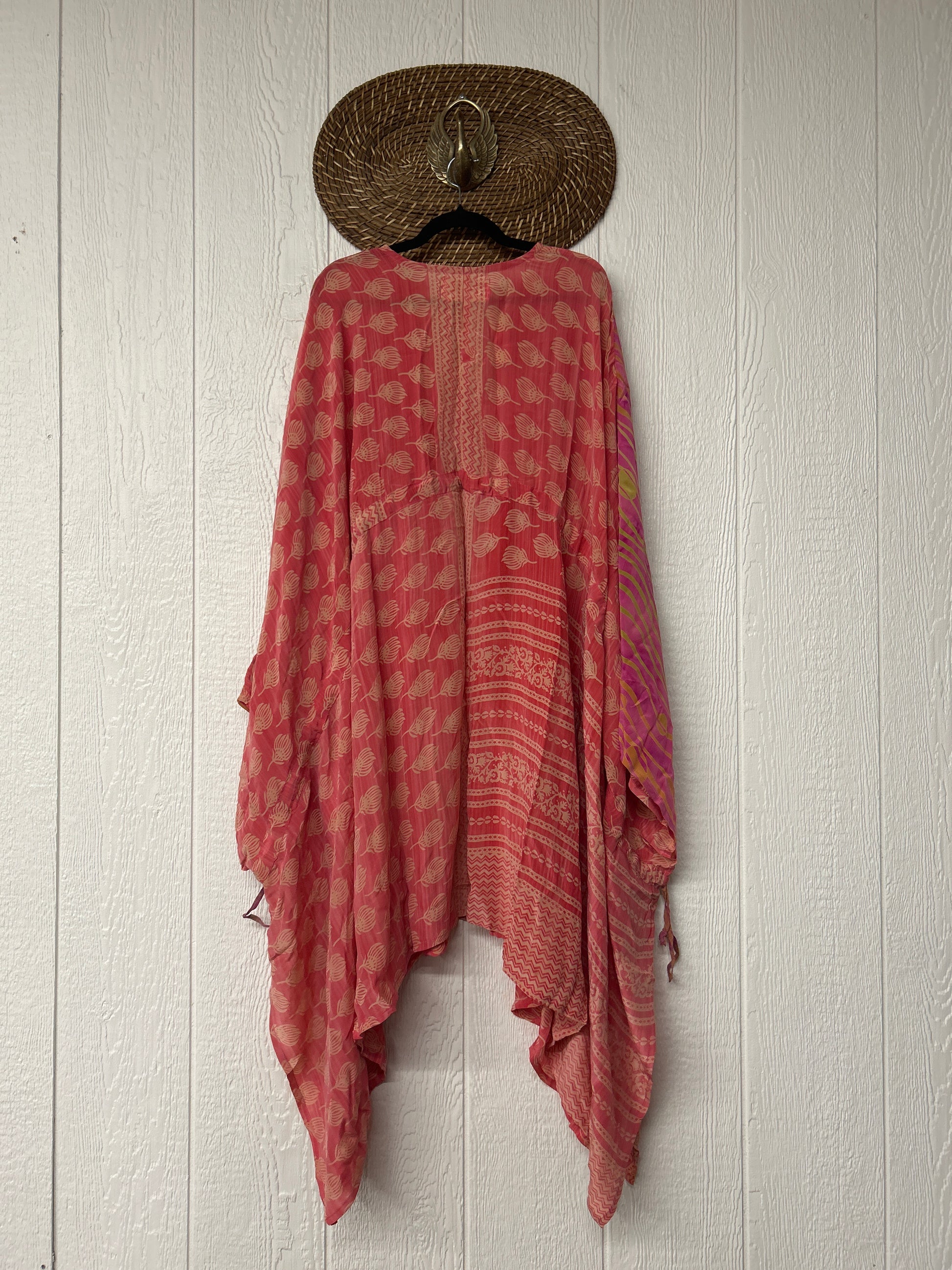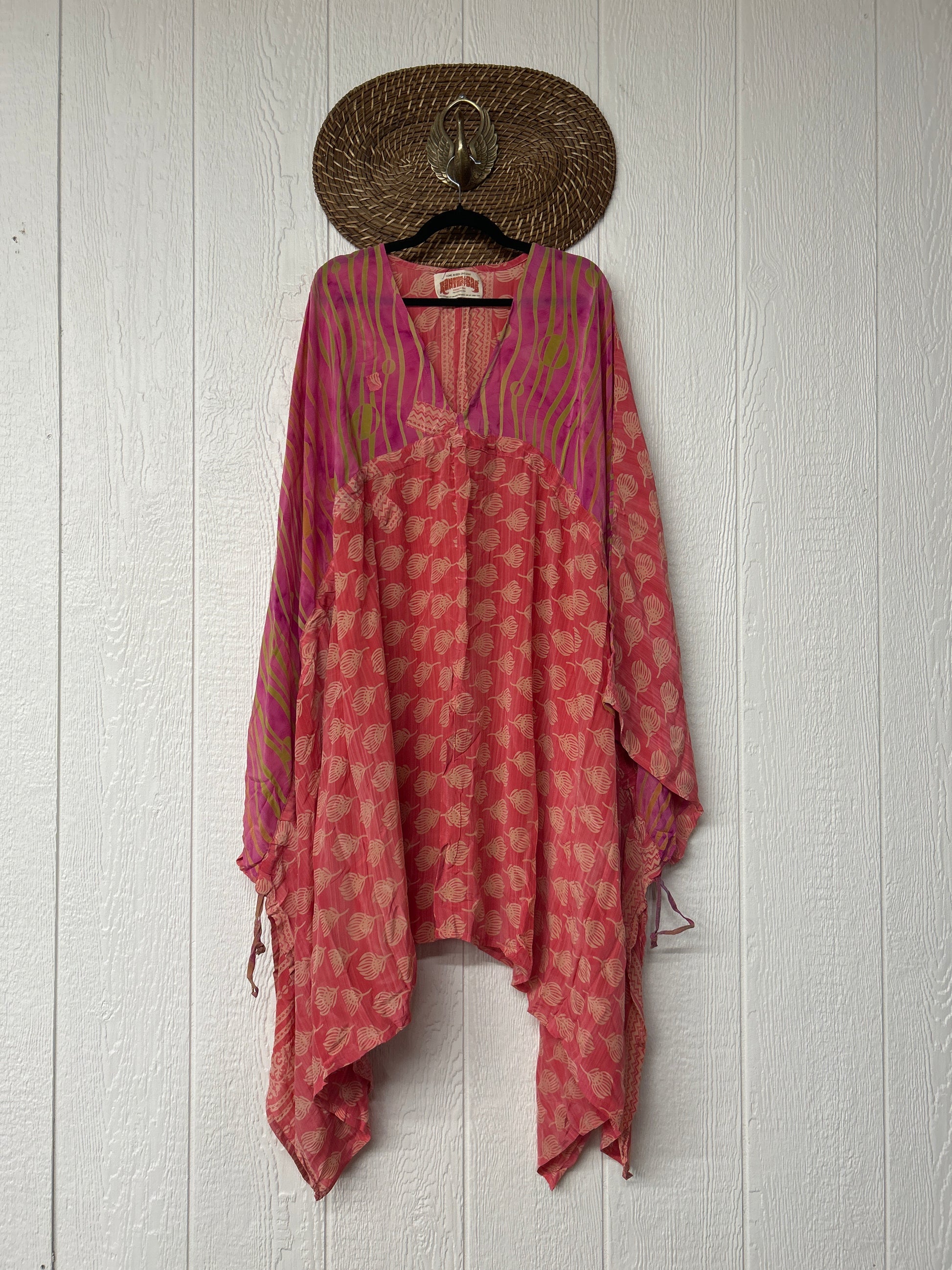 Fabrics may have small threads or holes in the layers. Color inconsistency or small stains may be present. The saris are sewn together and extend the life of each design.