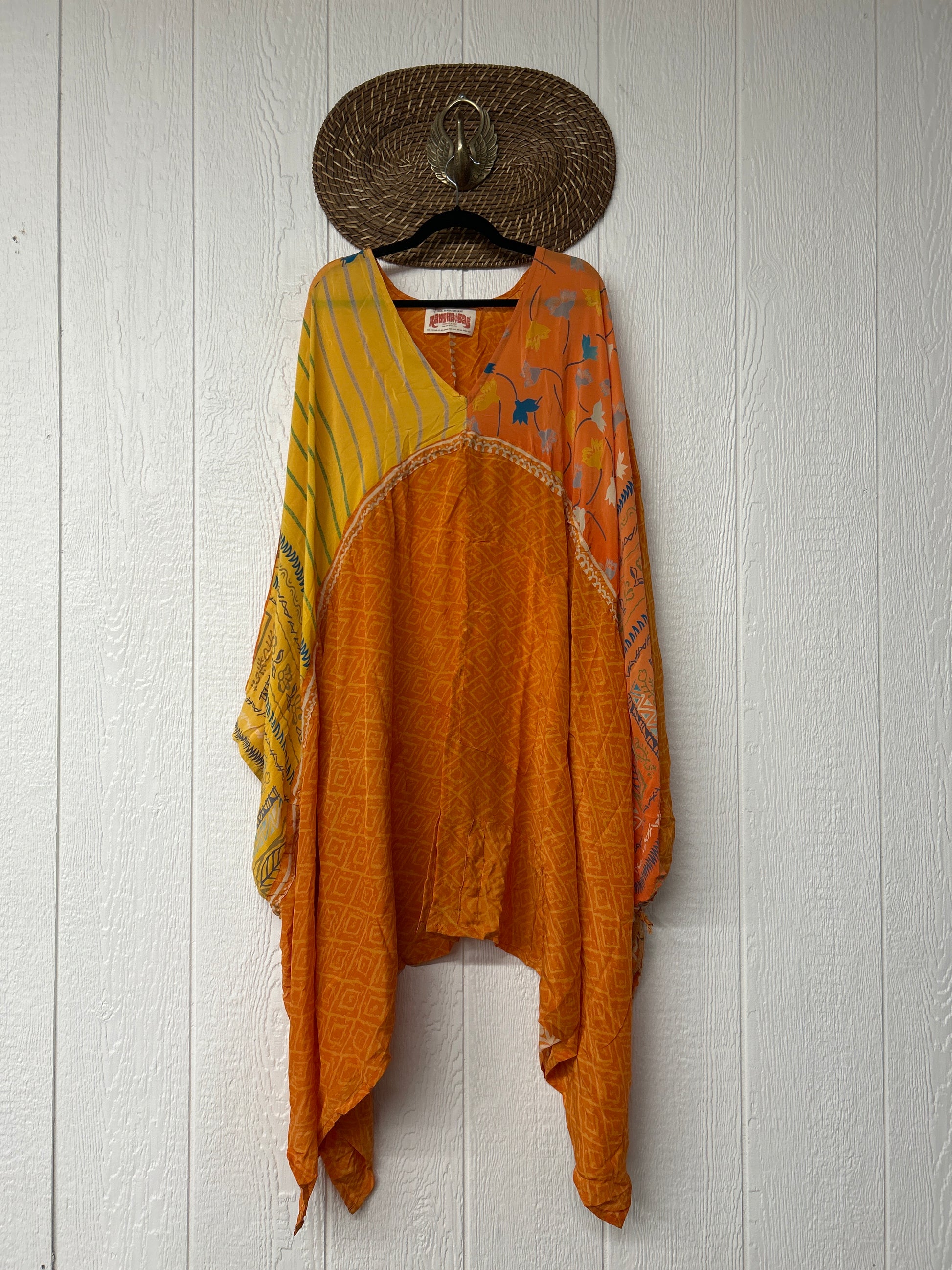 Fabrics may have small threads or holes in the layers. Color inconsistency or small stains may be present. The saris are sewn together and extend the life of each design.