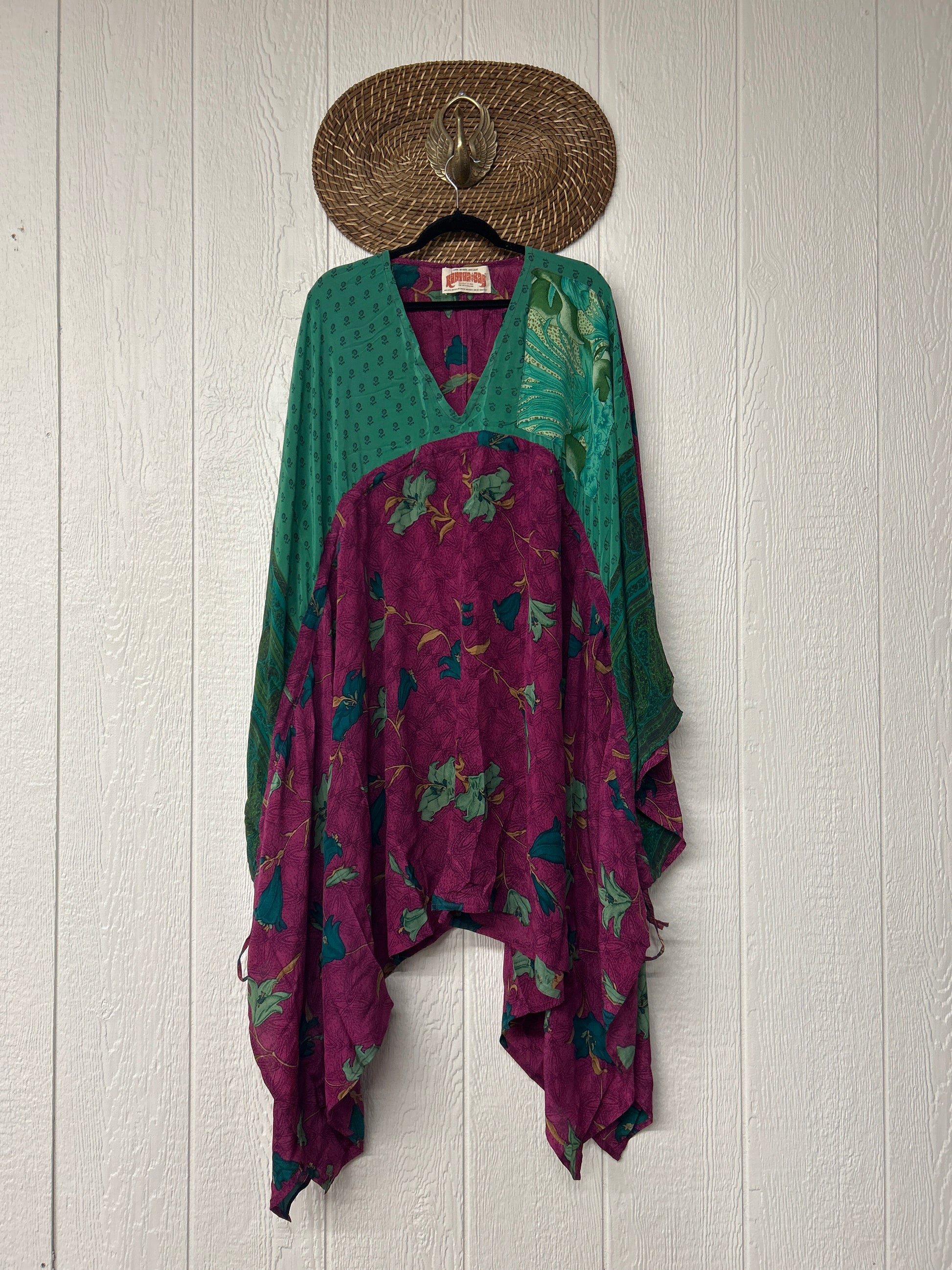 Fabrics may have small threads or holes in the layers. Color inconsistency or small stains may be present. The saris are sewn together and extend the life of each design.