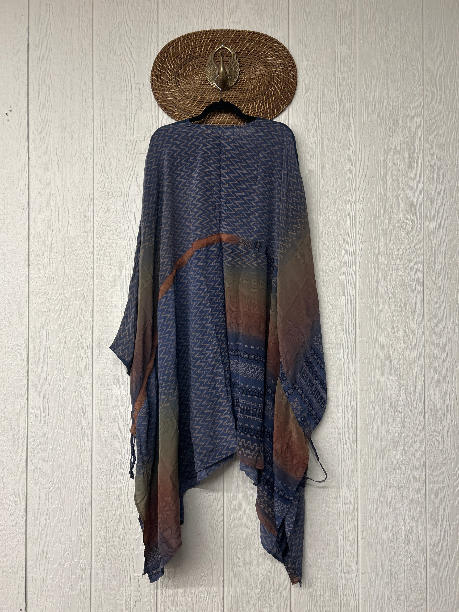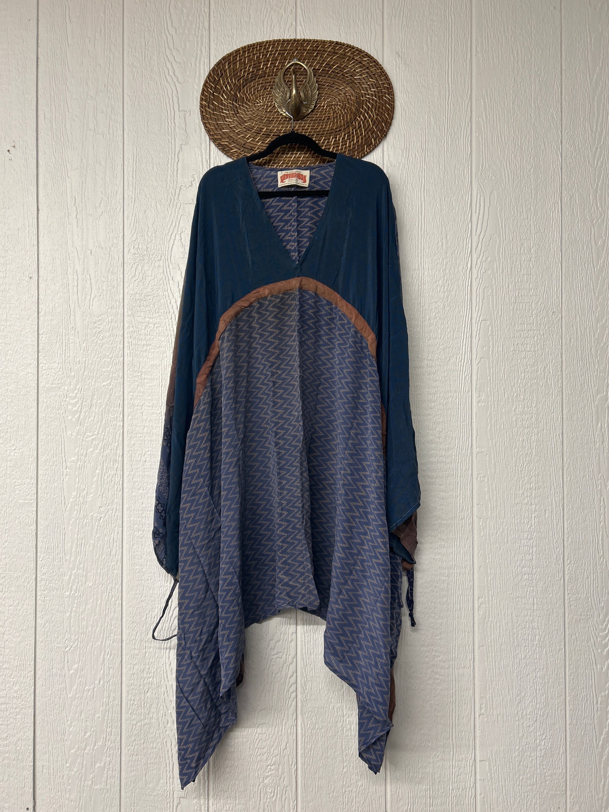 Fabrics may have small threads or holes in the layers. Color inconsistency or small stains may be present. The saris are sewn together and extend the life of each design.