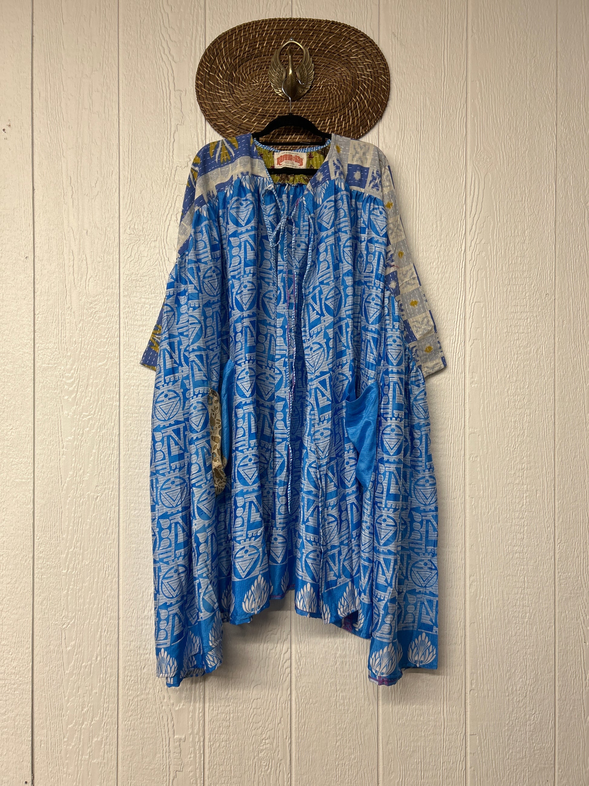 Twirl around to your heart's delight in our new Fleetwood Kimono. This floaty dream is a divine mix of our ultra lux Kantha embroidered vintage cotton and rasgulla sari. Features a tie neck closure and slouchy exterior pockets.