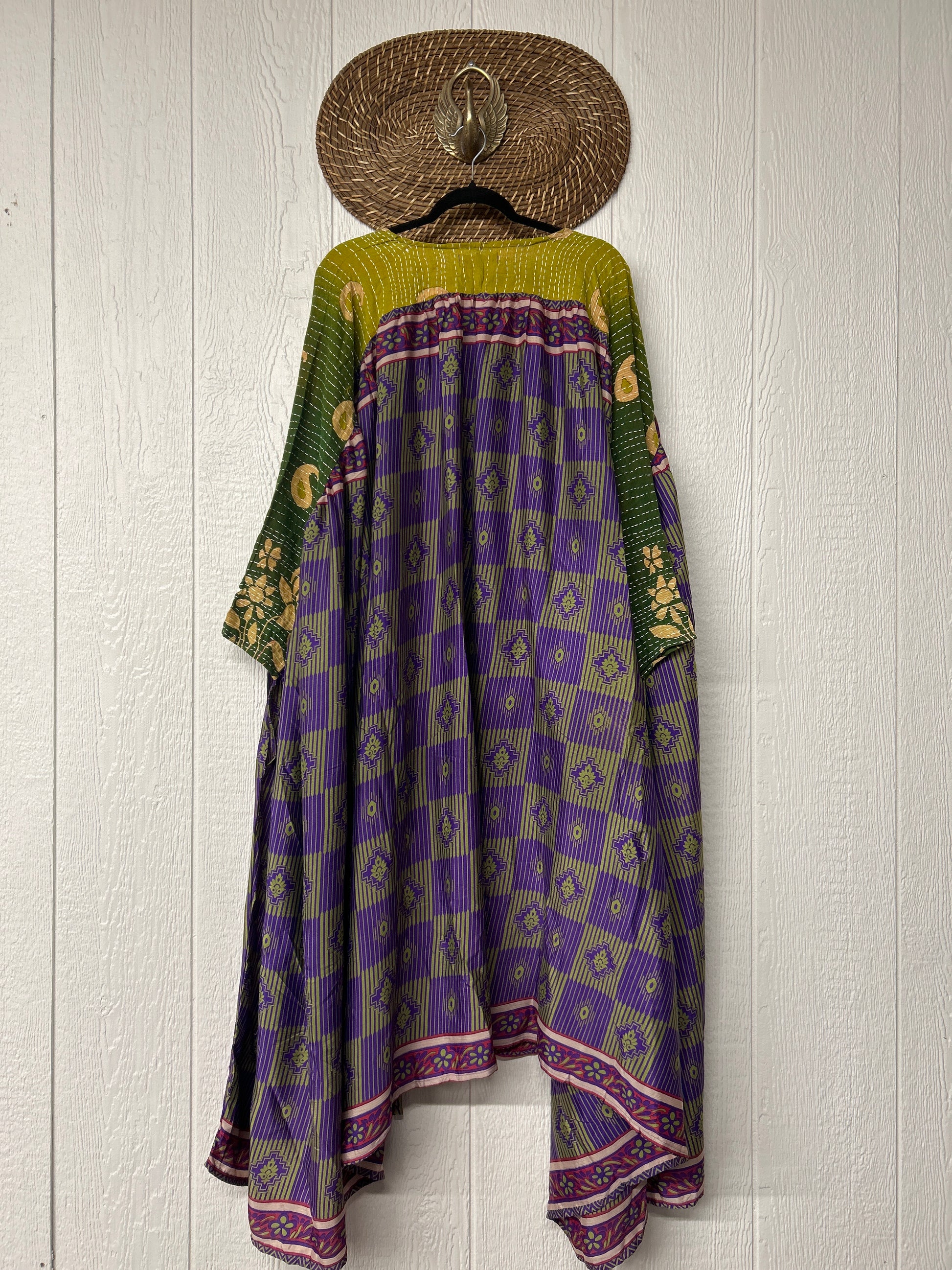 Twirl around to your heart's delight in our new Fleetwood Kimono. This floaty dream is a divine mix of our ultra lux Kantha embroidered vintage cotton and rasgulla sari. Features a tie neck closure and slouchy exterior pockets.