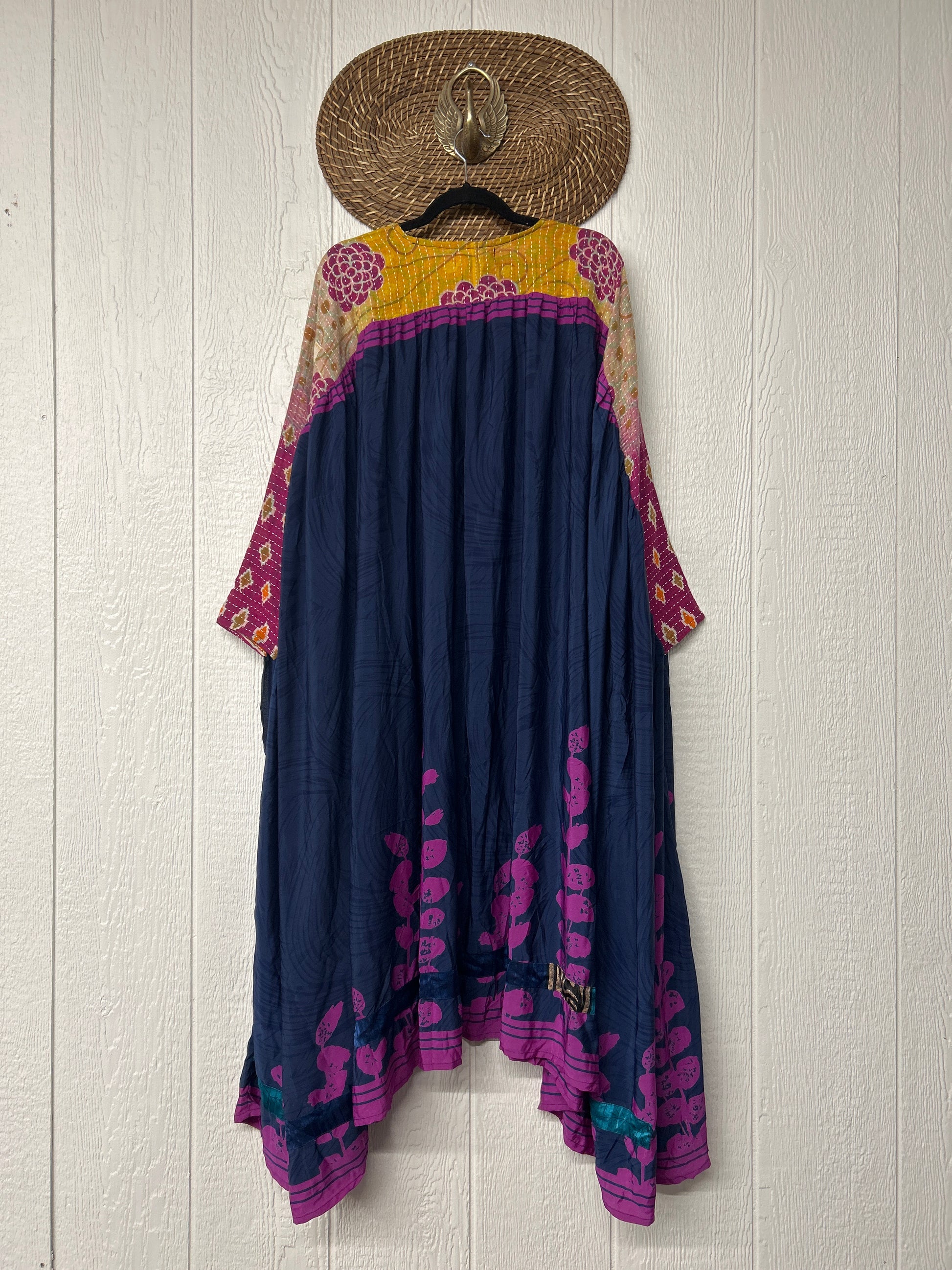 Twirl around to your heart's delight in our new Fleetwood Kimono. This floaty dream is a divine mix of our ultra lux Kantha embroidered vintage cotton and rasgulla sari. Features a tie neck closure and slouchy exterior pockets.